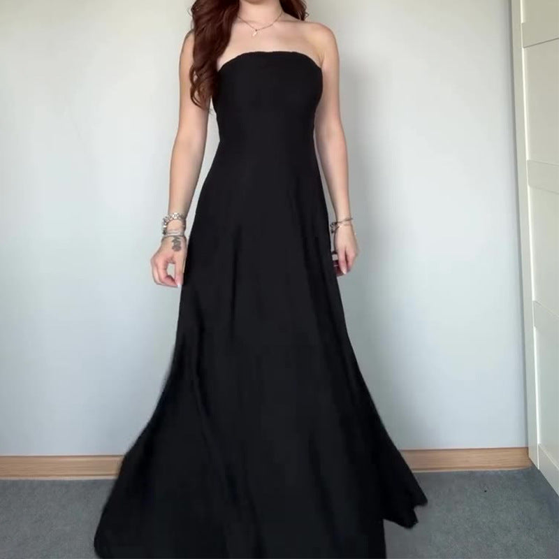 2024 New Female Decoration Height Waist Simple Temperament High-Grade Breast-Smear Lightweight Dress