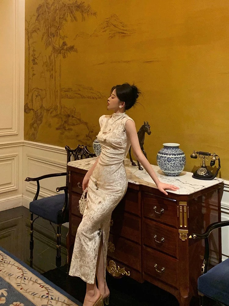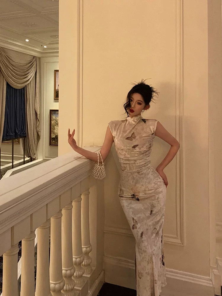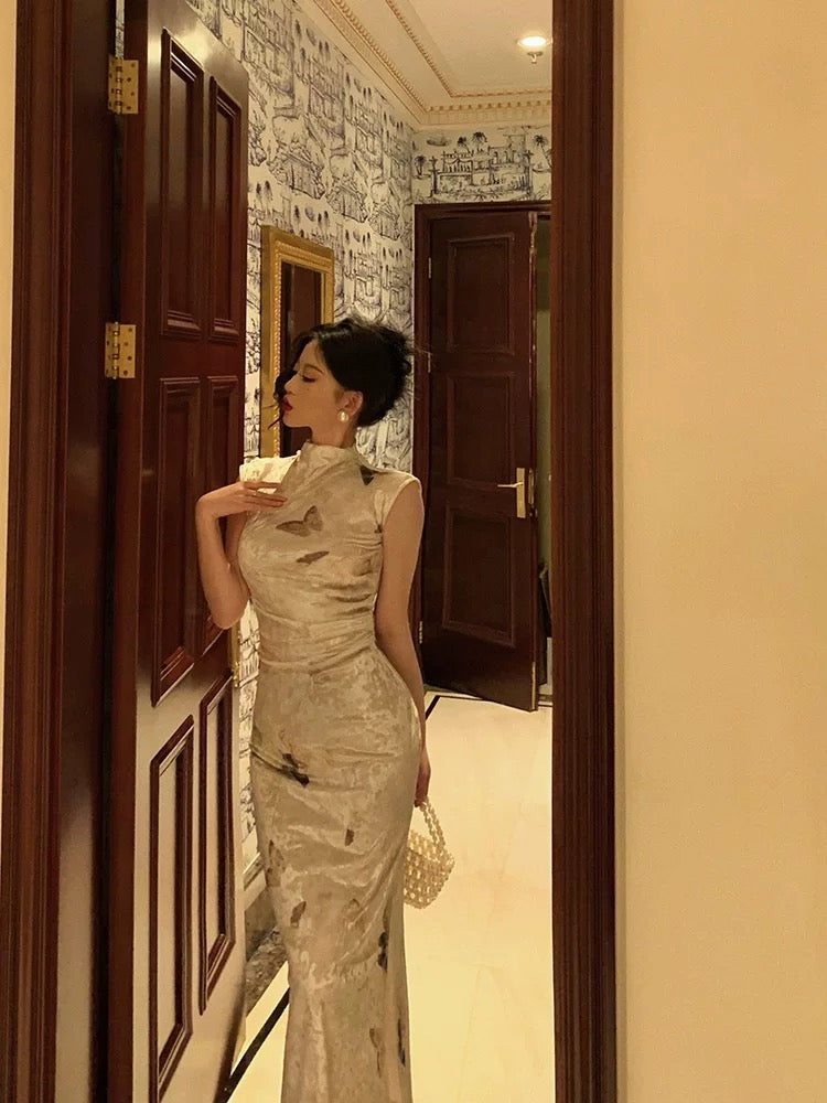Sheath High Neckline Velvet Flora Prom Dresses Birthday Outfits Evening Gown SD1090