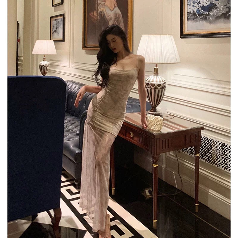 Sheath Spaghetti Straps Floral Long Prom Dresses Birthday Outfits Evening Gown SD916