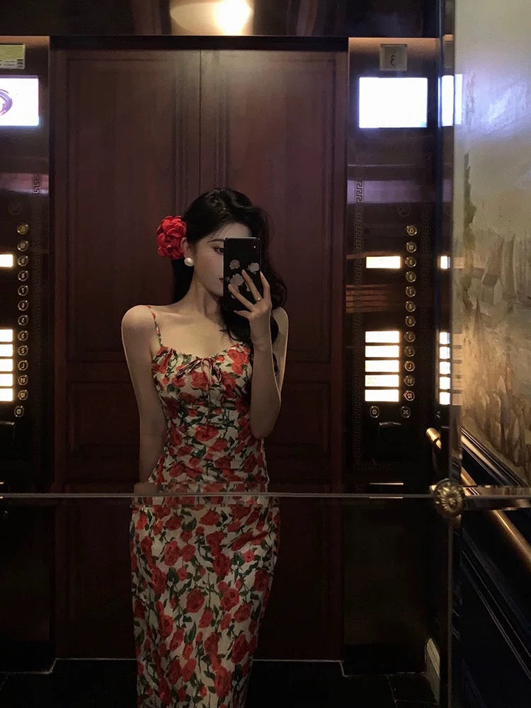 Sheath Spaghetti Straps Floral Prom Dresses Birthday Outfits Evening Gown SD787