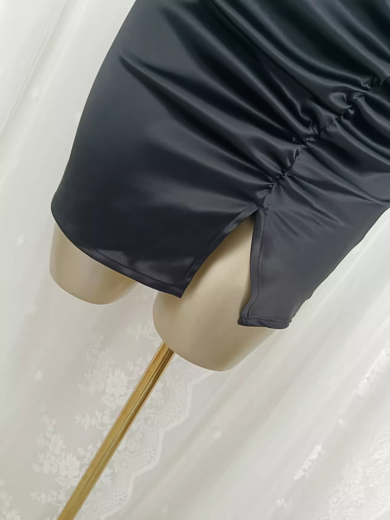 Sheath Straps Floral Black Slit Travel Vacation Dress Short Birthday Dress SD0059