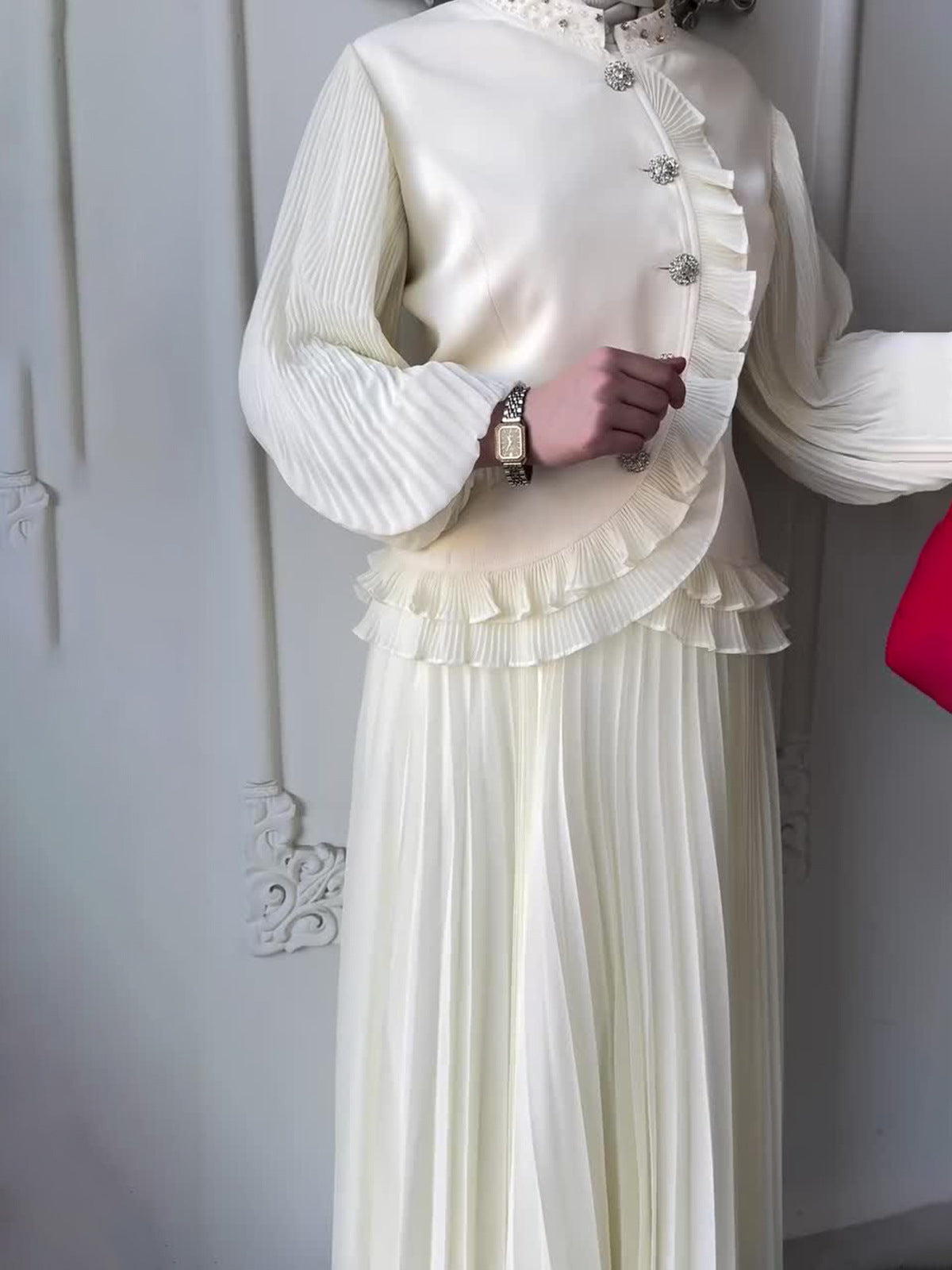 2024 New Wood Ear Design Sense Fashion Temperament Subfolding Loose Skirt Suit Woman