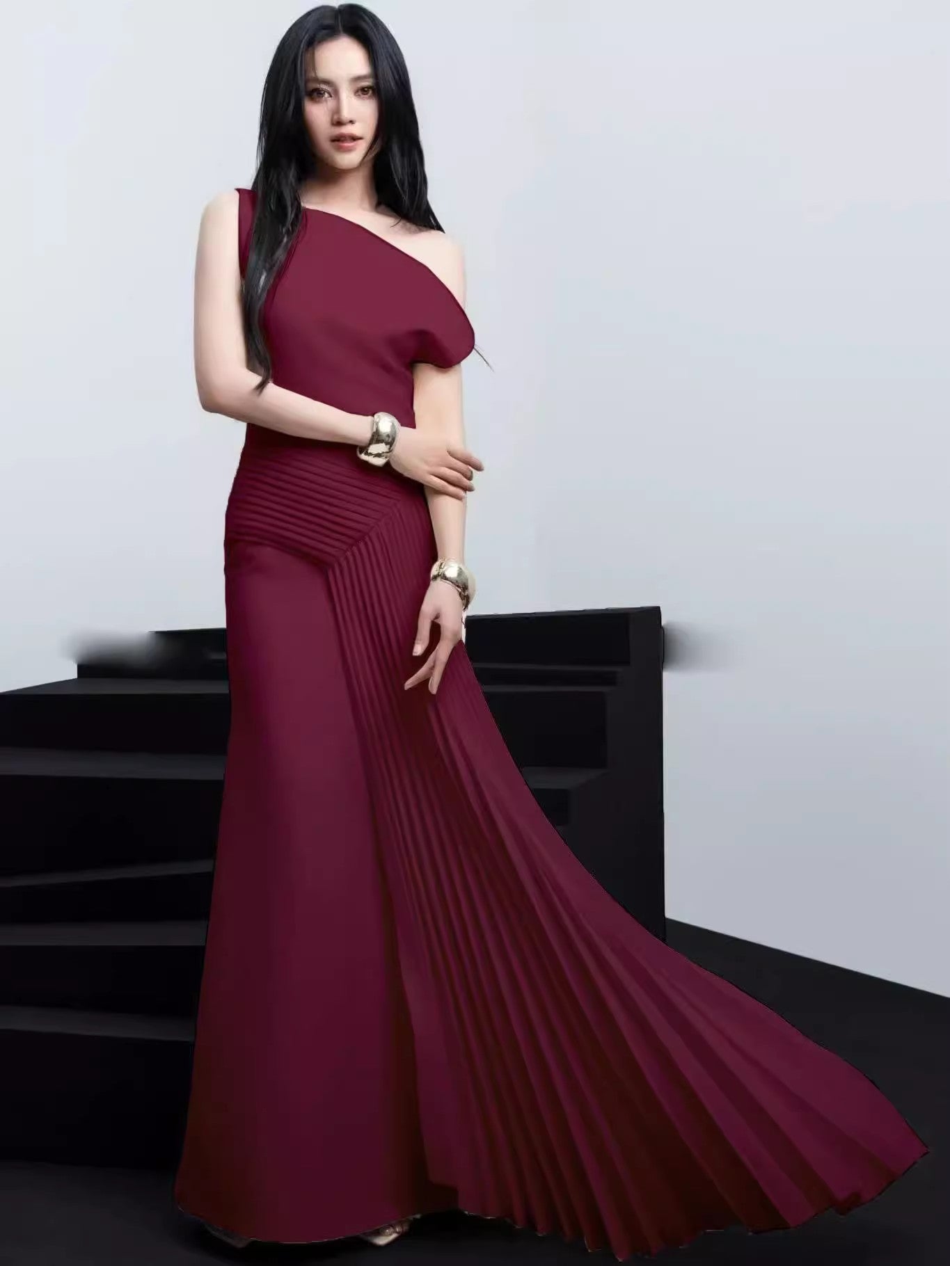 2025 Asymmetrical Collared Shoulder Dress Dress Dress