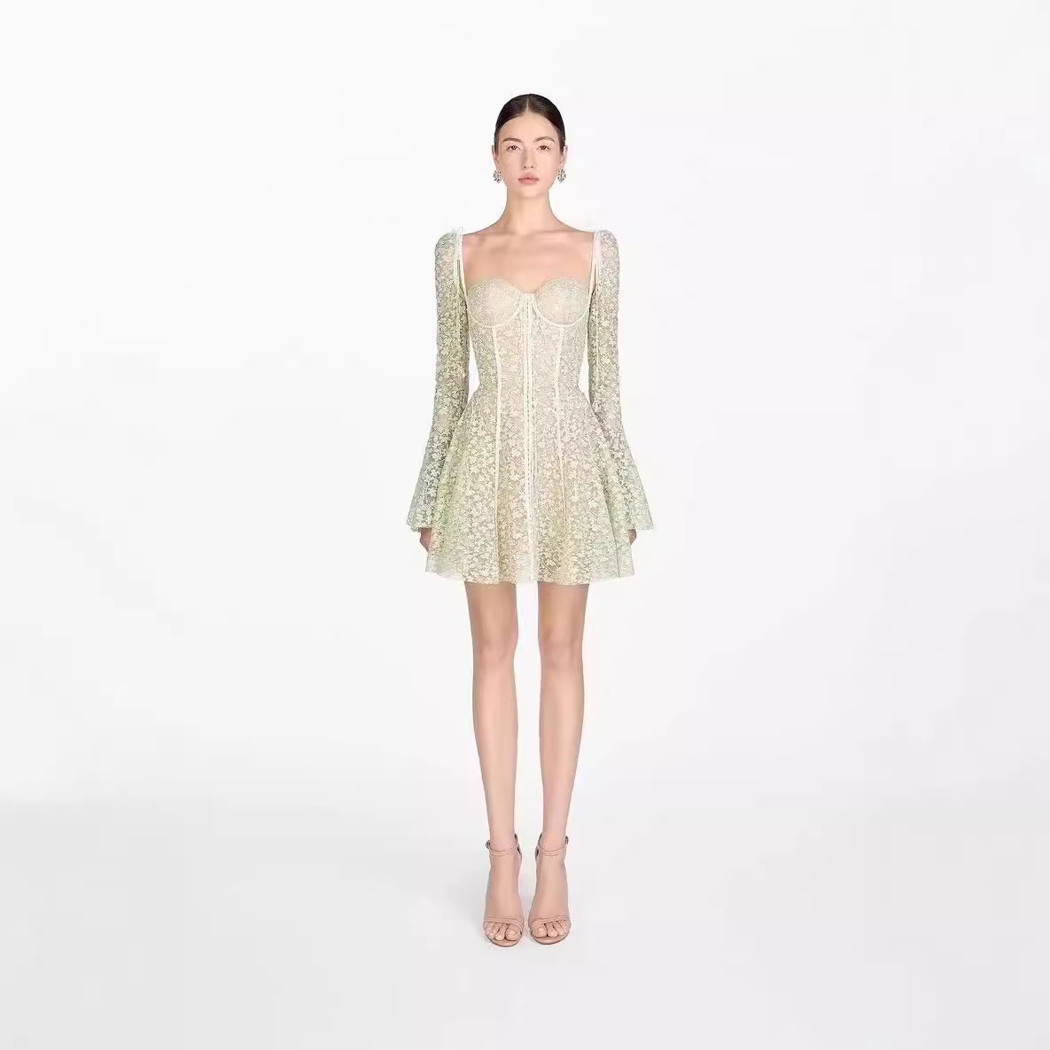 2025 Fang Tangsu Strap Horn Sleeve A-Sided Lace Embroidery Skirt