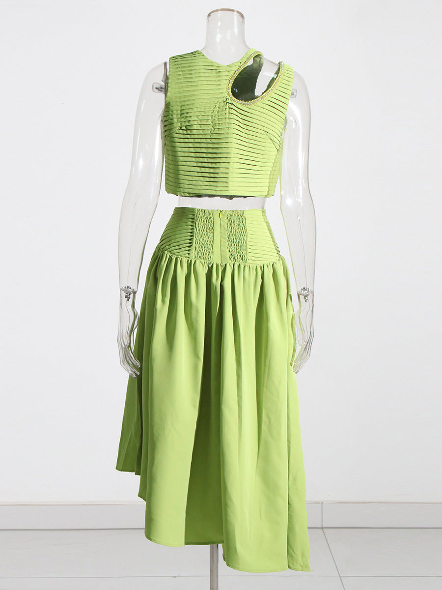 2025 New Folded Holed Blouse Irregular Skirt Dress Suit