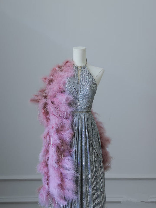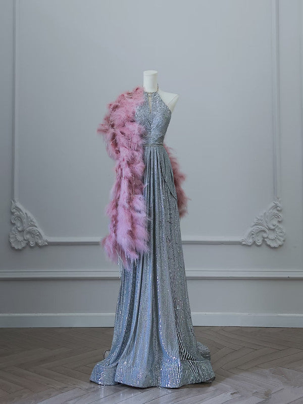 A Line Scoop Neckline Silver Sequin Long Prom Dresses Evening Gowns S3821