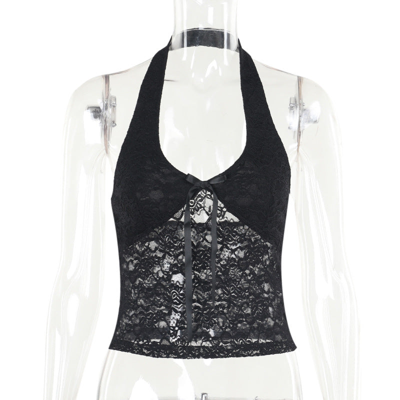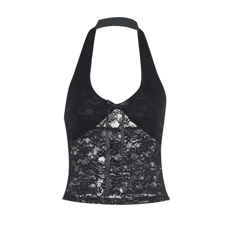 Autumn 2025 New Hanging Neck Top Sexy V-Neck Lace Babes Waistcoat Woman DJPT