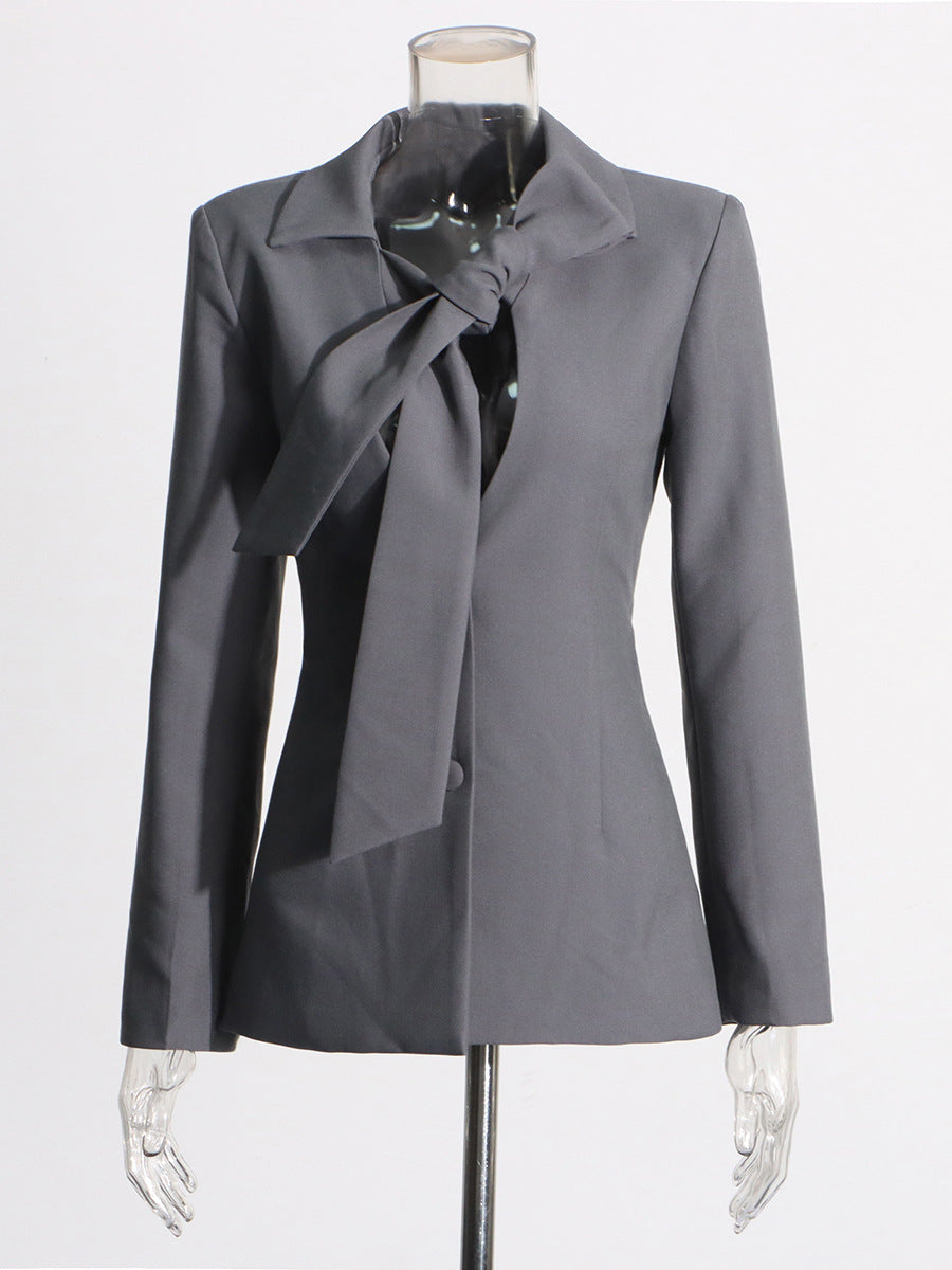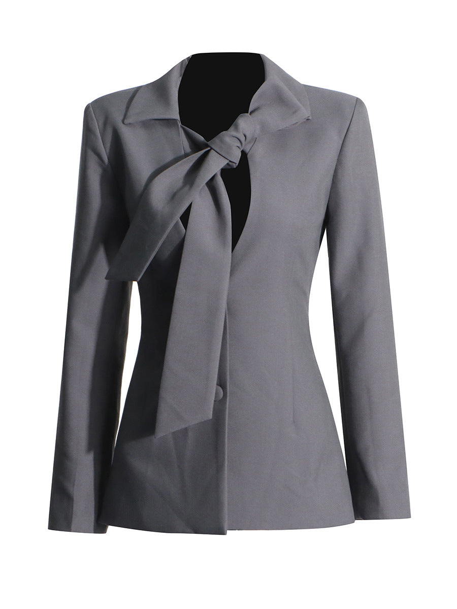 English Style Suit 2025 New V Tie With Single Buckle Senior Gray Coat Top Lady