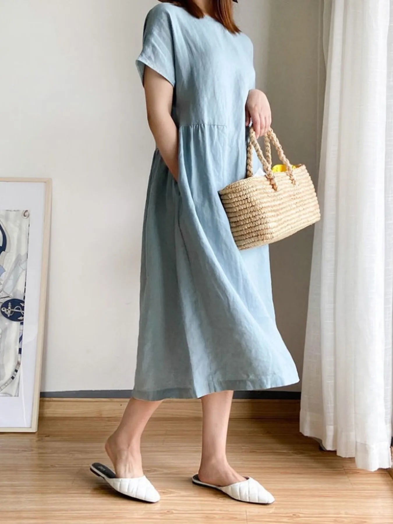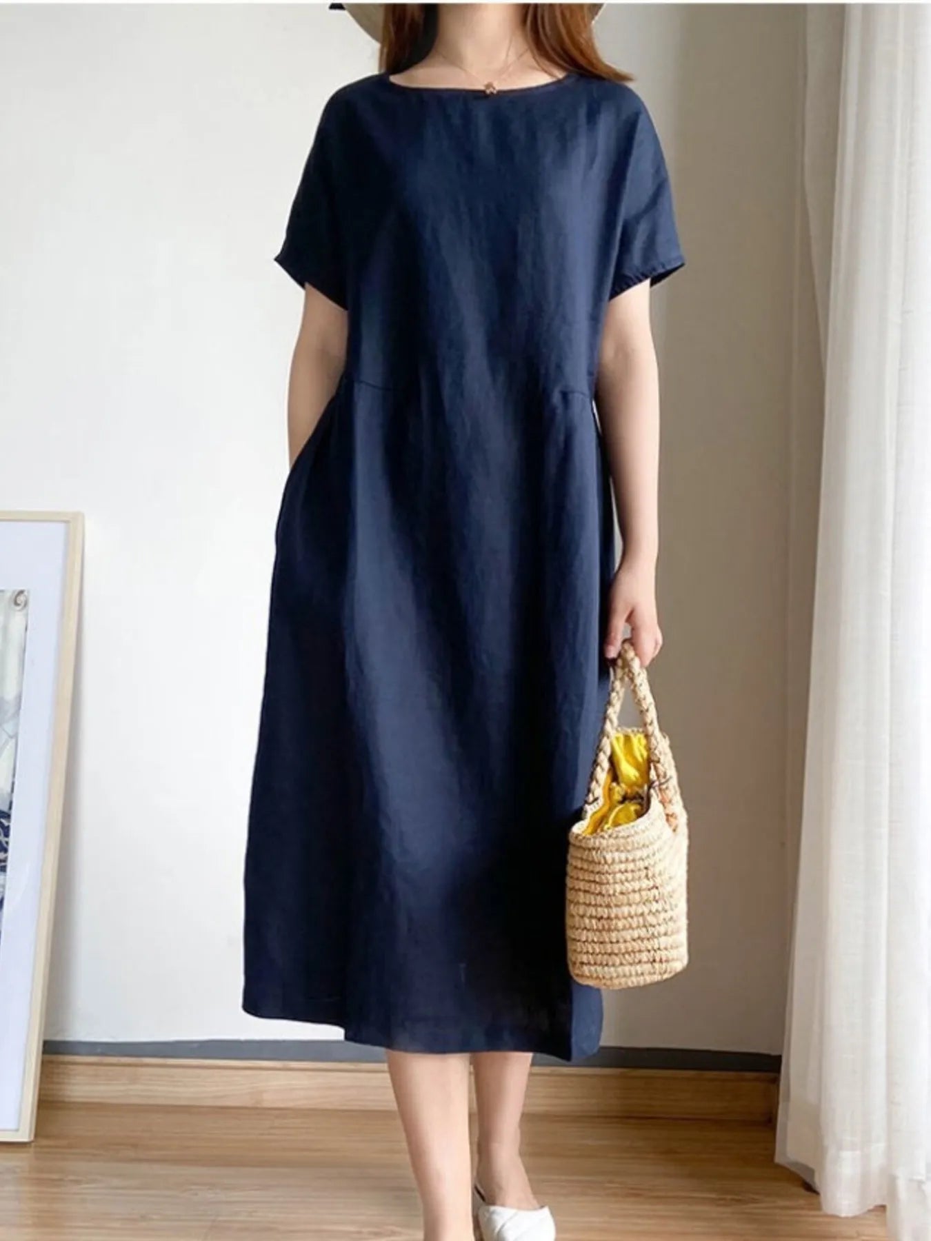 Size Casual Round Neck Midi Dress Plus Size DJPT