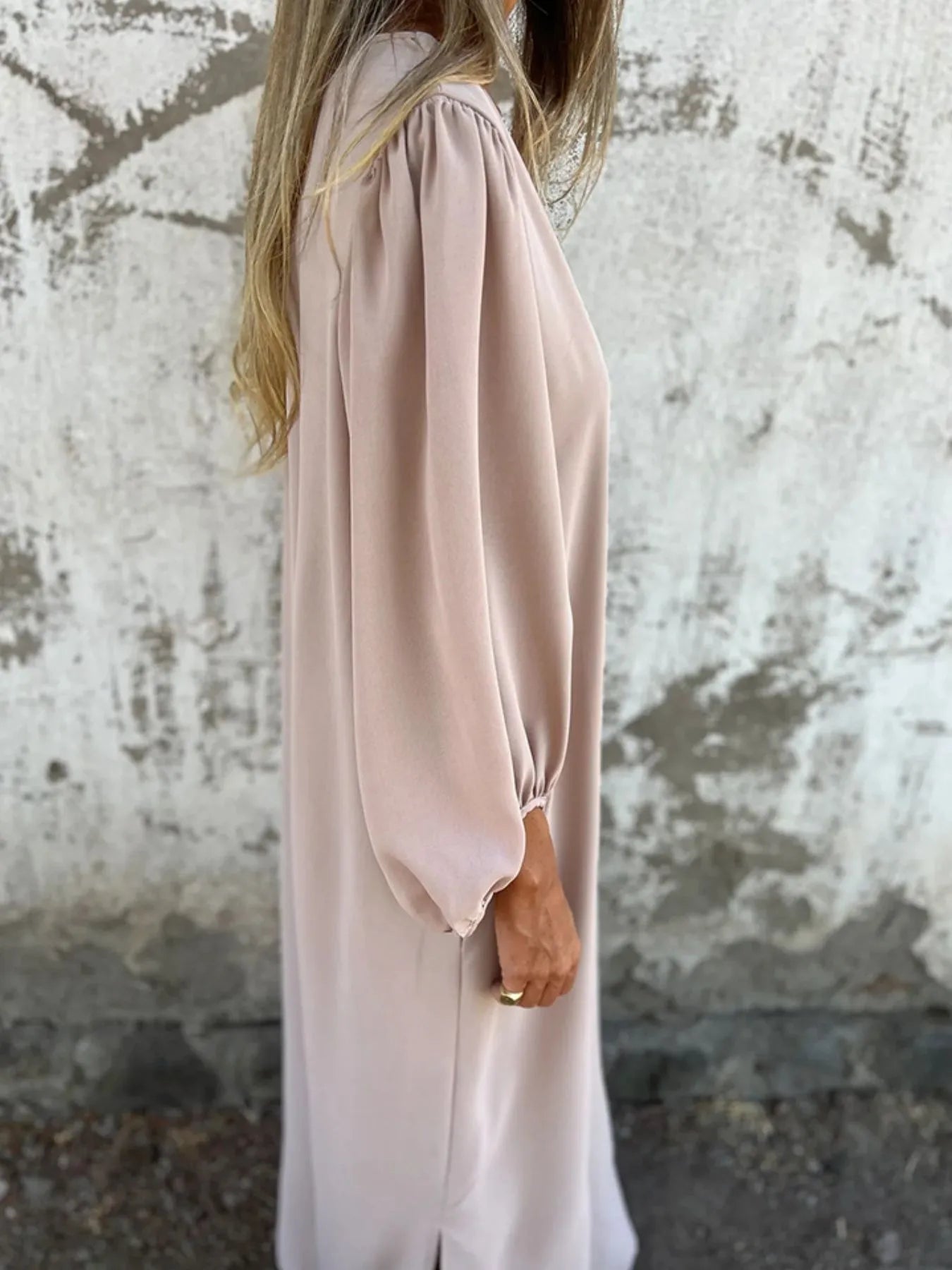Size Slit V-Neck Balloon Sleeve Midi Dress Plus Size DJPT