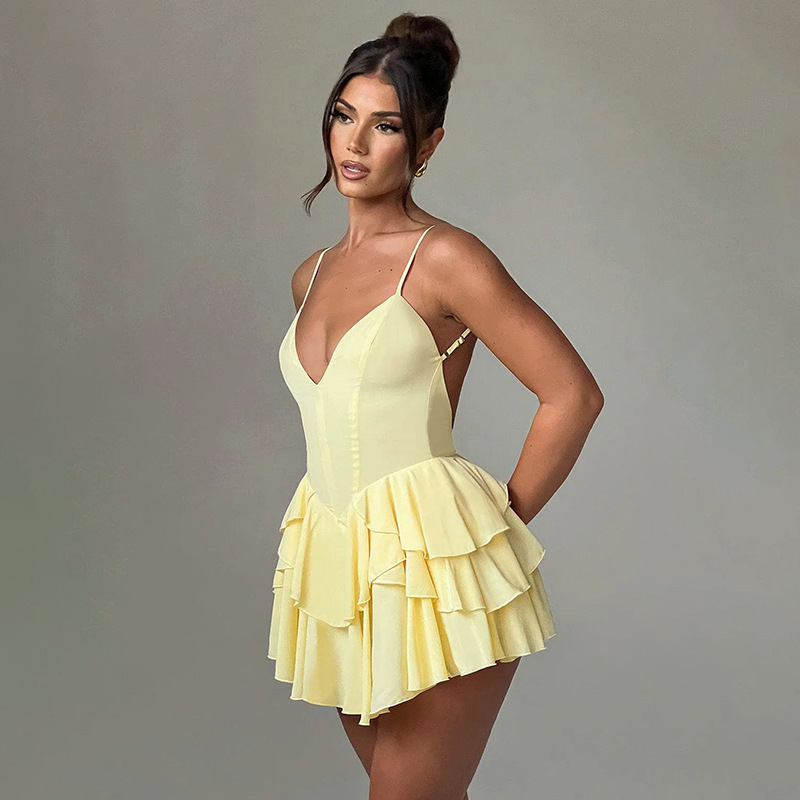 Summer 2025 New Sexy Temperament Babes Double Cake With Sling Skirt DJPT