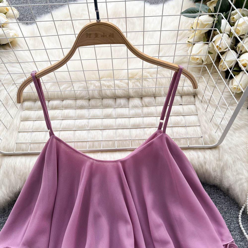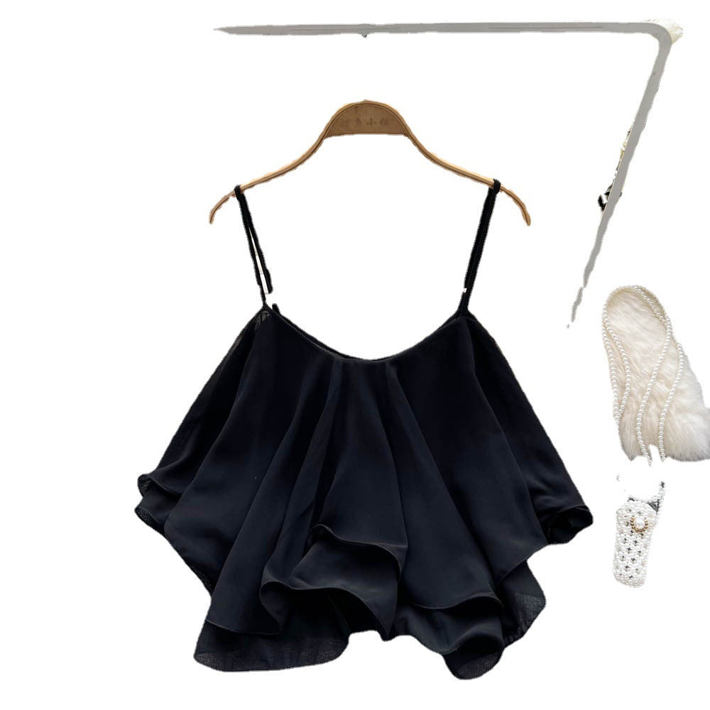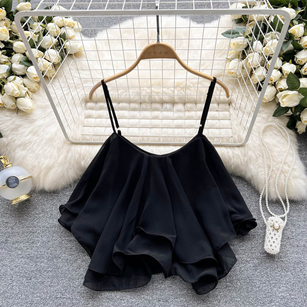 Summer Blouse Loose Lotus Side Shoulder Double Sleeveless Sleeveless Sling Sling Vest Woman DJPT