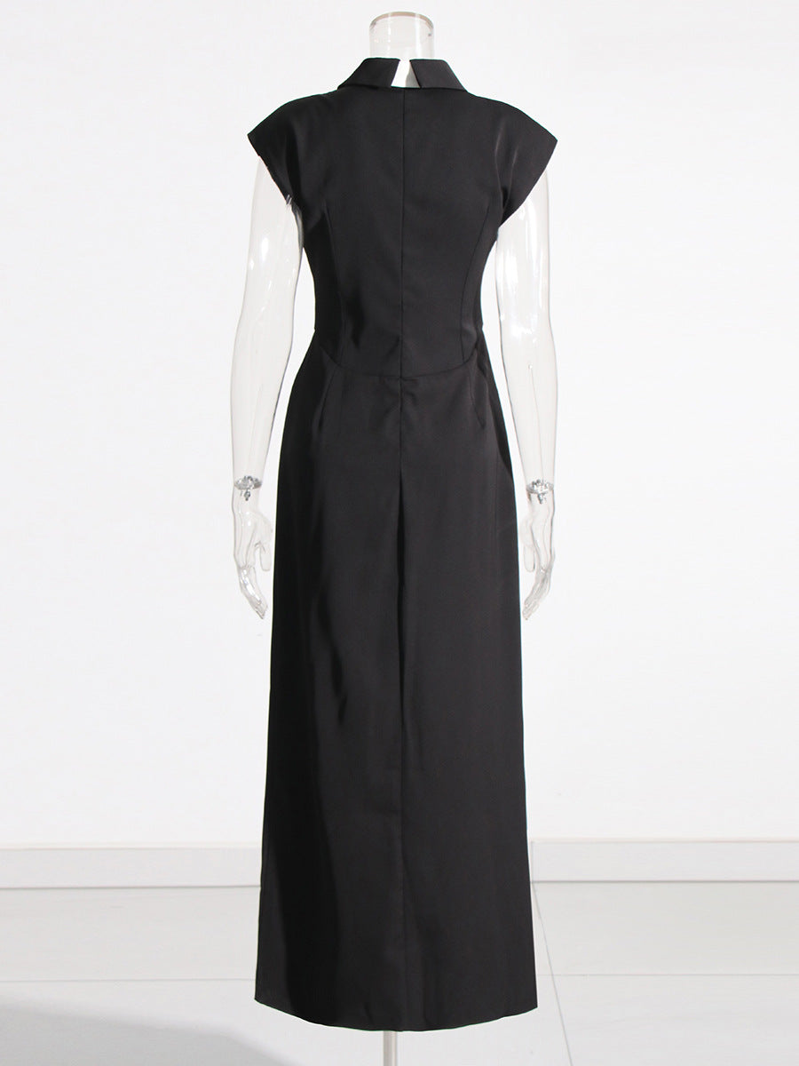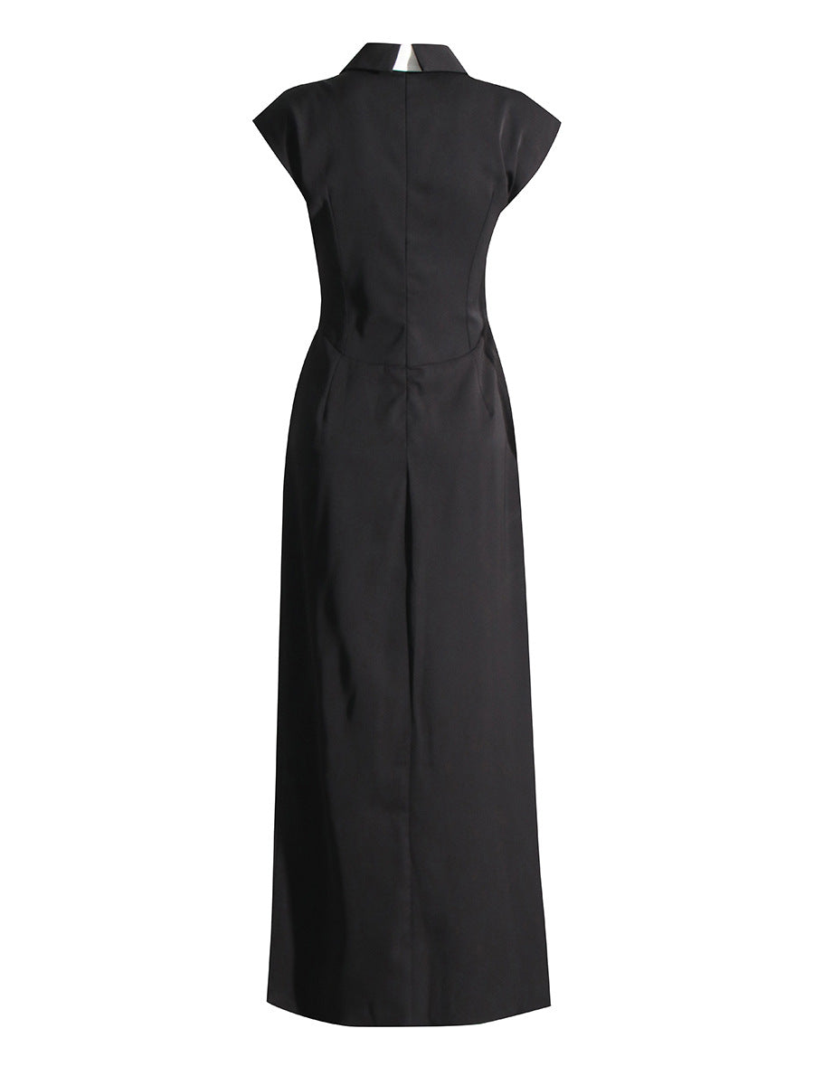 Summer New Fashion High Street Wind Flip-Neck Flying Sleeve Tie Design Nail Drill Open Dress Dress Woman