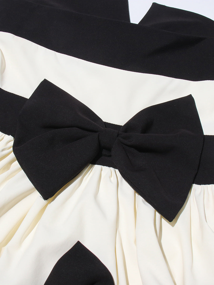 Temperament Style Dress 2025 Summer New Face Splicing Bow Bump Design Dress Dress Dress Dress