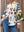 Button Detail Floral Patchwork Crochet Sleeve Blouse DJPT