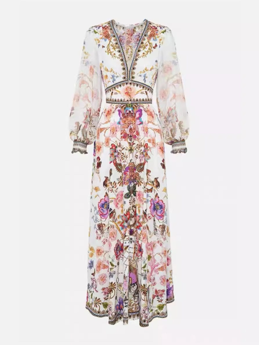 Autumn Australian Tide Brand CML Elegant Temperament Print V Received Waist Thin And Flowing Dress Dress Woman