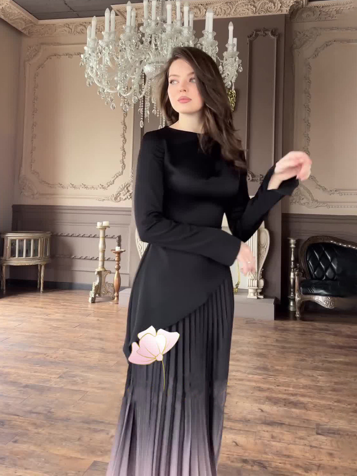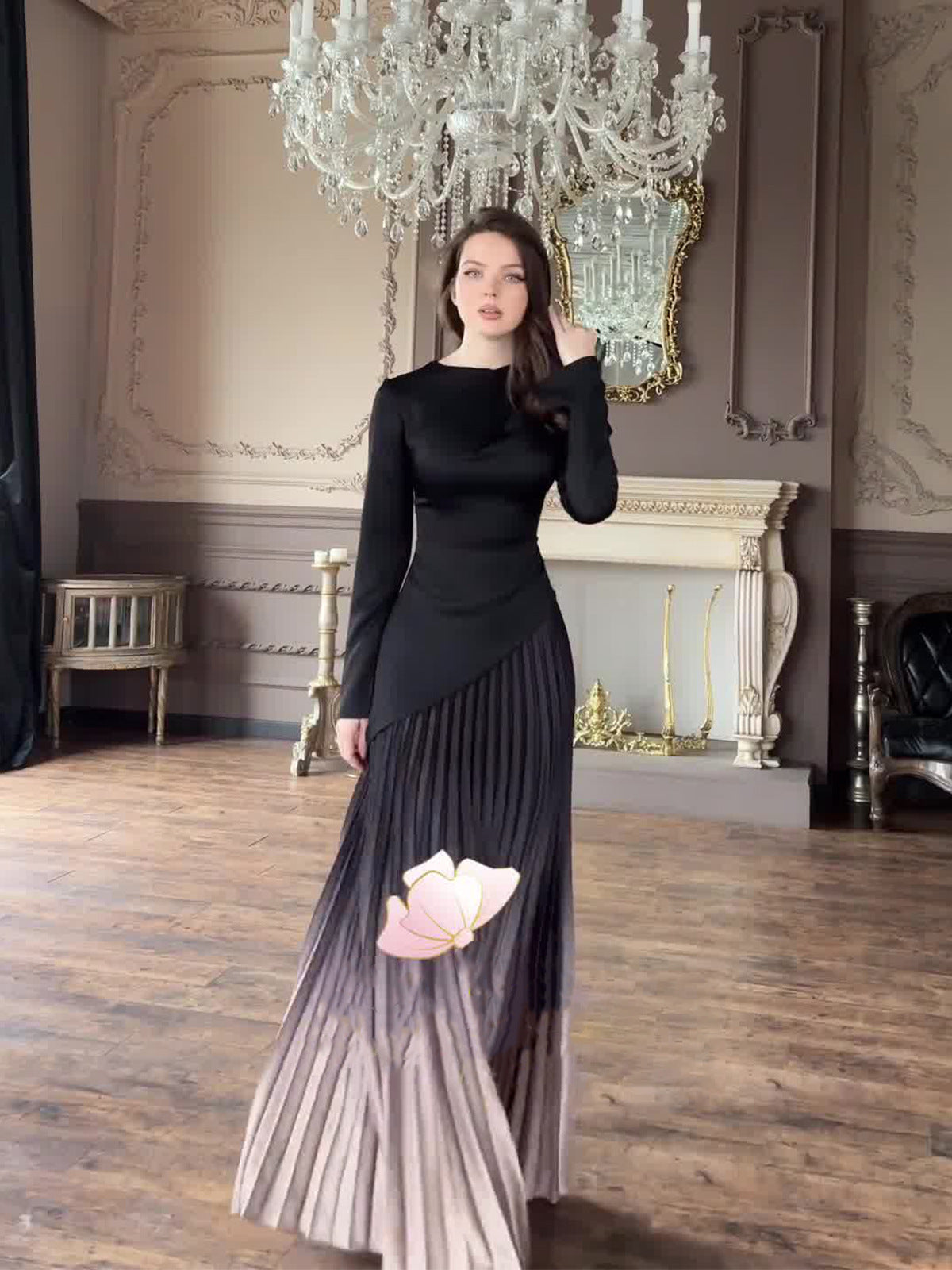 Autumn New Famous Wind Dye Repair Gradient Pressure Folding Long Dress Woman