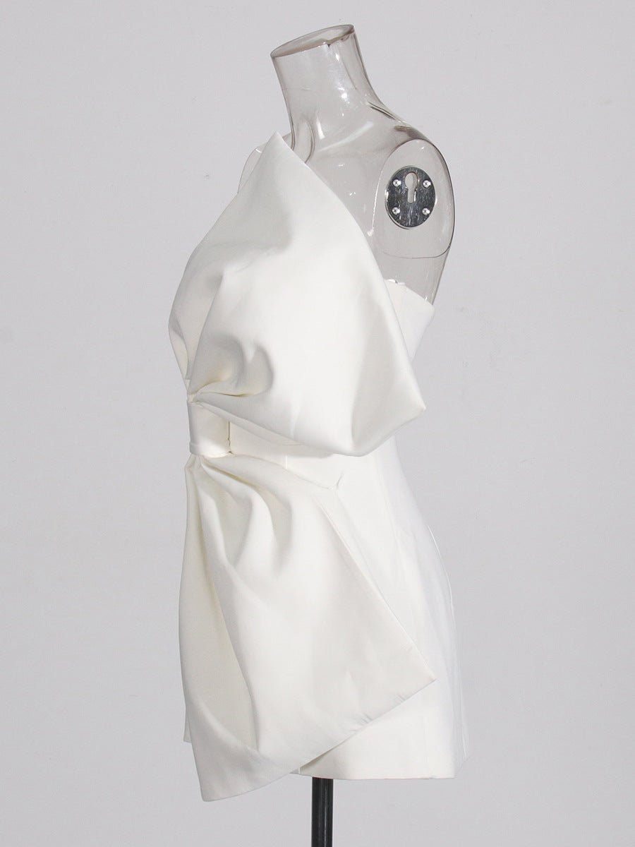 Dress Dress 2025 Summer New High-End Feel Bow Asymmetrical Decorative Bra Dress Dress Woman