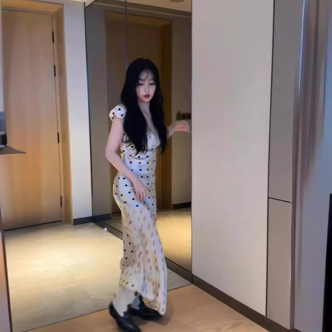 Dress Xin French Style Fascling Dress Fairy Temperament Sexy Bare Back Seaside Print Dress
