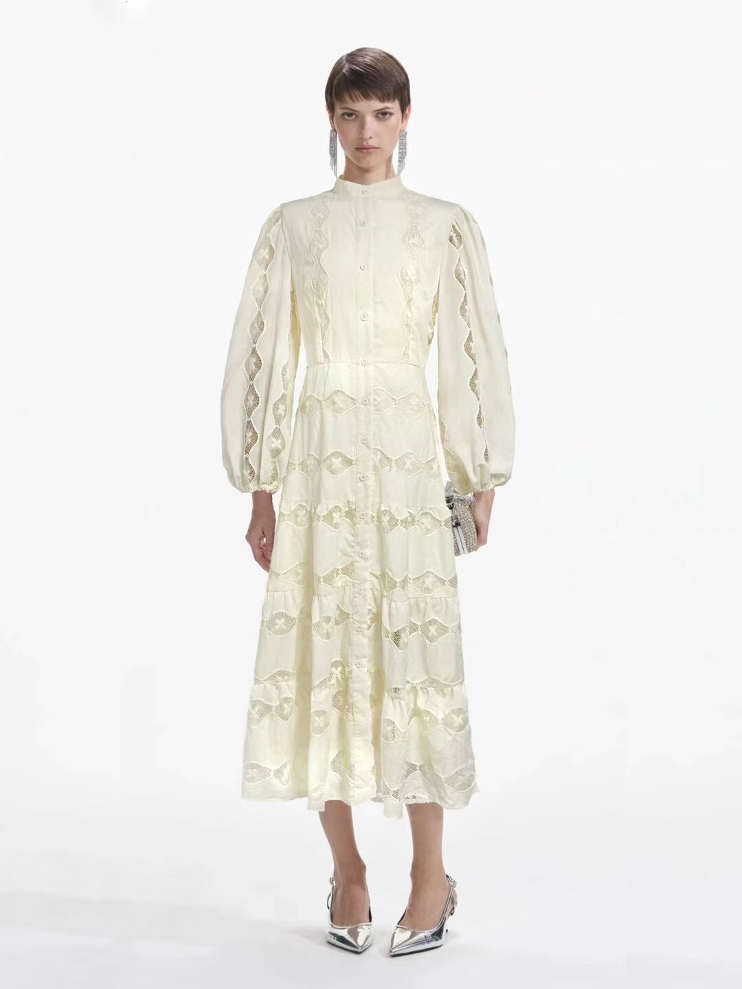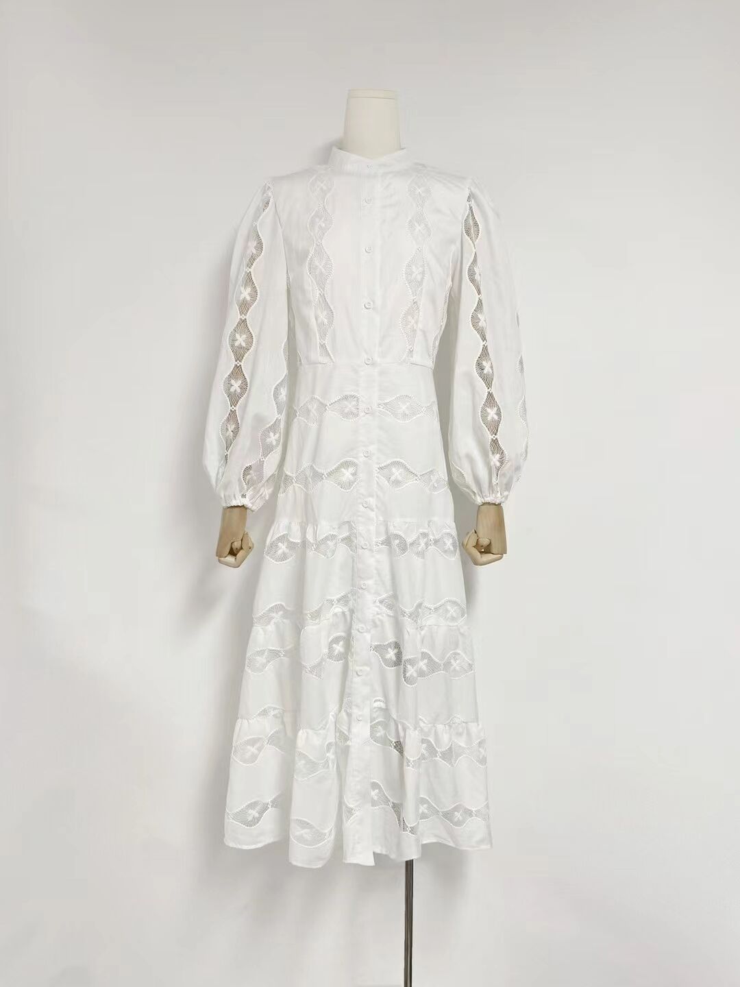 Early Spring High-End Fashion Elegant Collar Heavy Industry Embroidery Single Buckle Dress Dress Dress Dress Dress Dress Dress Woman