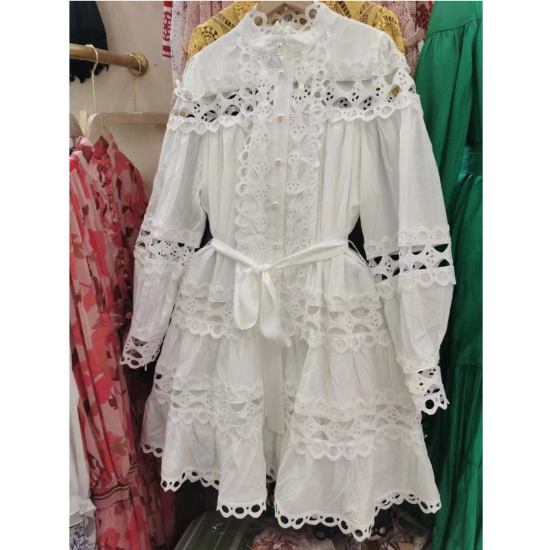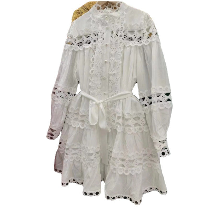 Early Spring New Australian Tide Brand Heavy Industry Hollow Lace Splicing Three-Dimensional Light Luxury Loose Fairy Dress