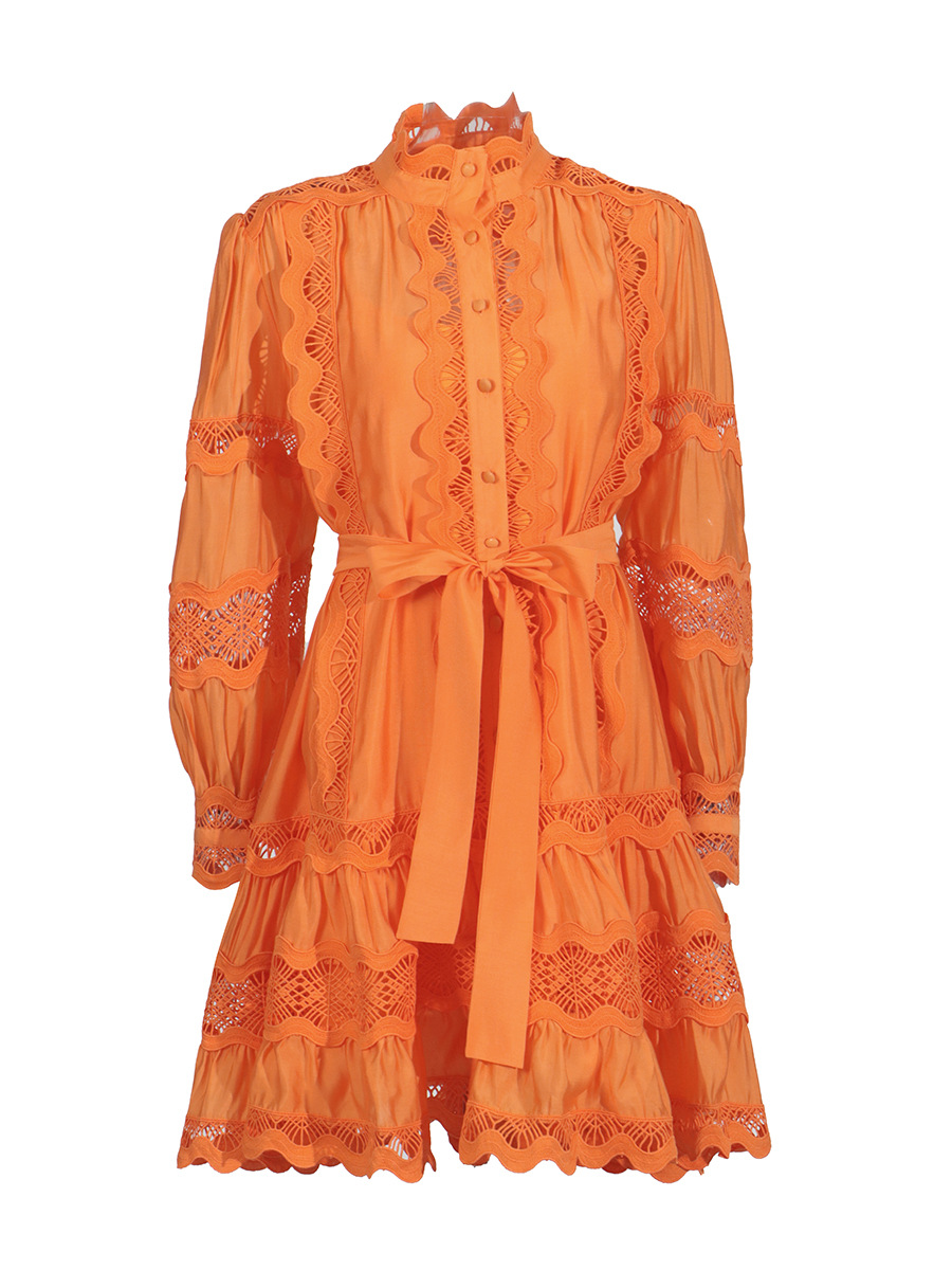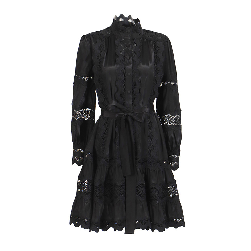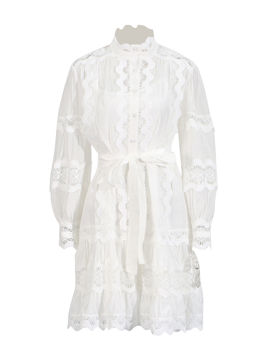 Elegant Court Style 2025 Summer New Collar Lace Embroidery Strap Lotus Side Lantern Sleeve Dress