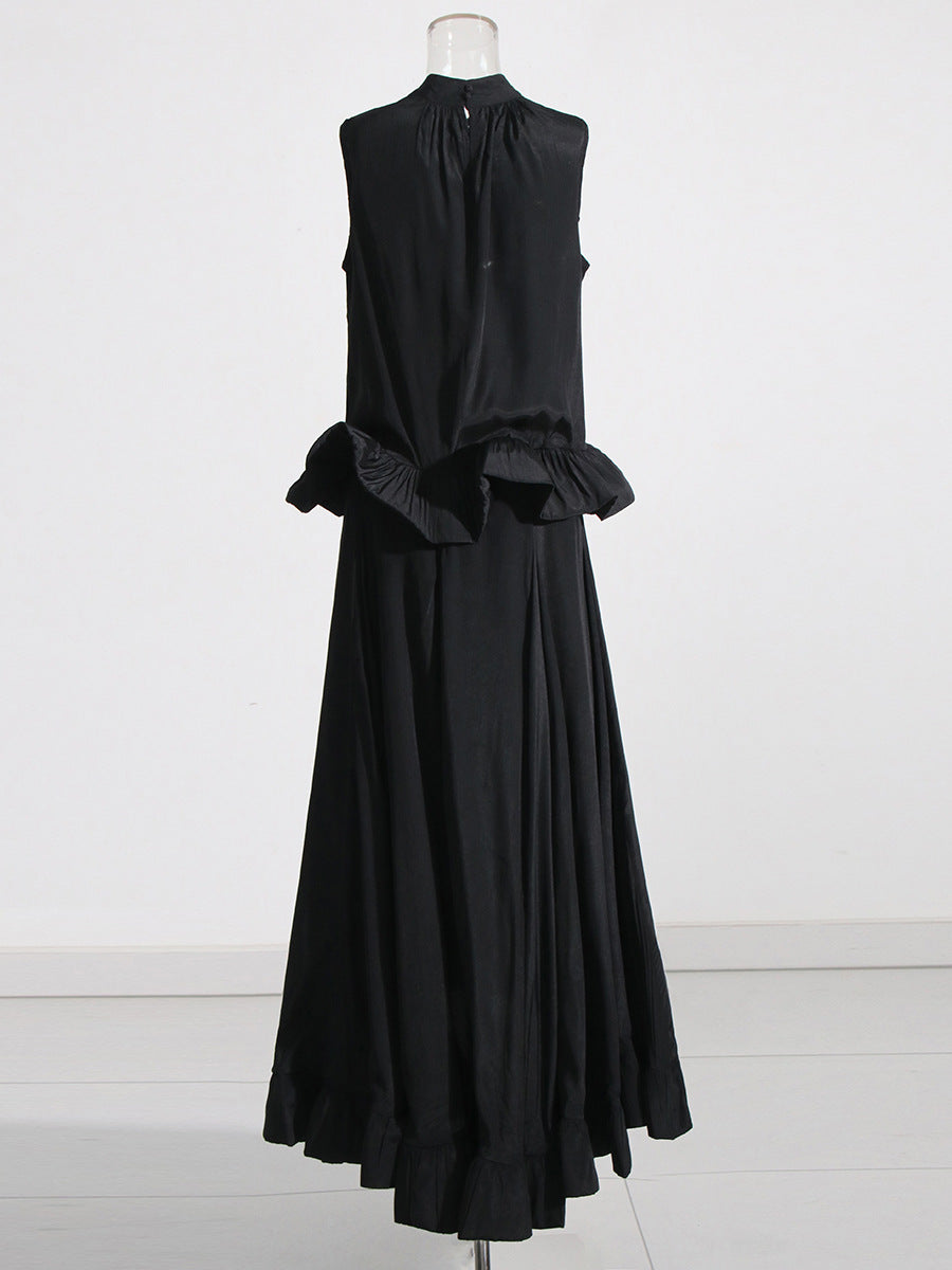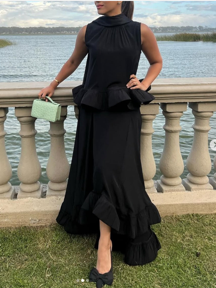 Elegant Style Suit 2025 Spring New Sleeveless Wrinkle Blouse Irregular Lotus Leaf Dress Two Sets Of Women