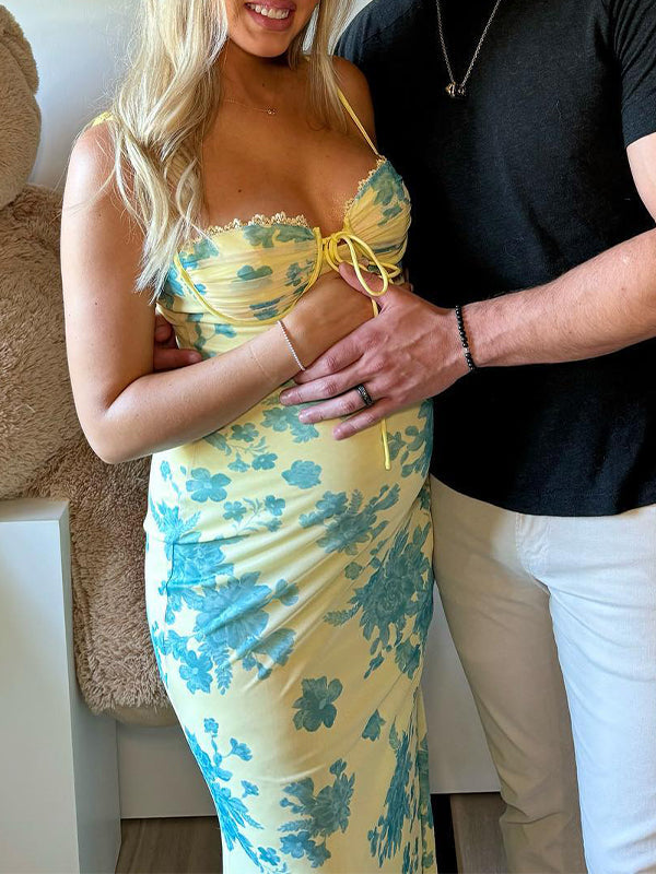 Flowers Sweetheart Neckline Cute Maternity Maxi Dress Maternity
