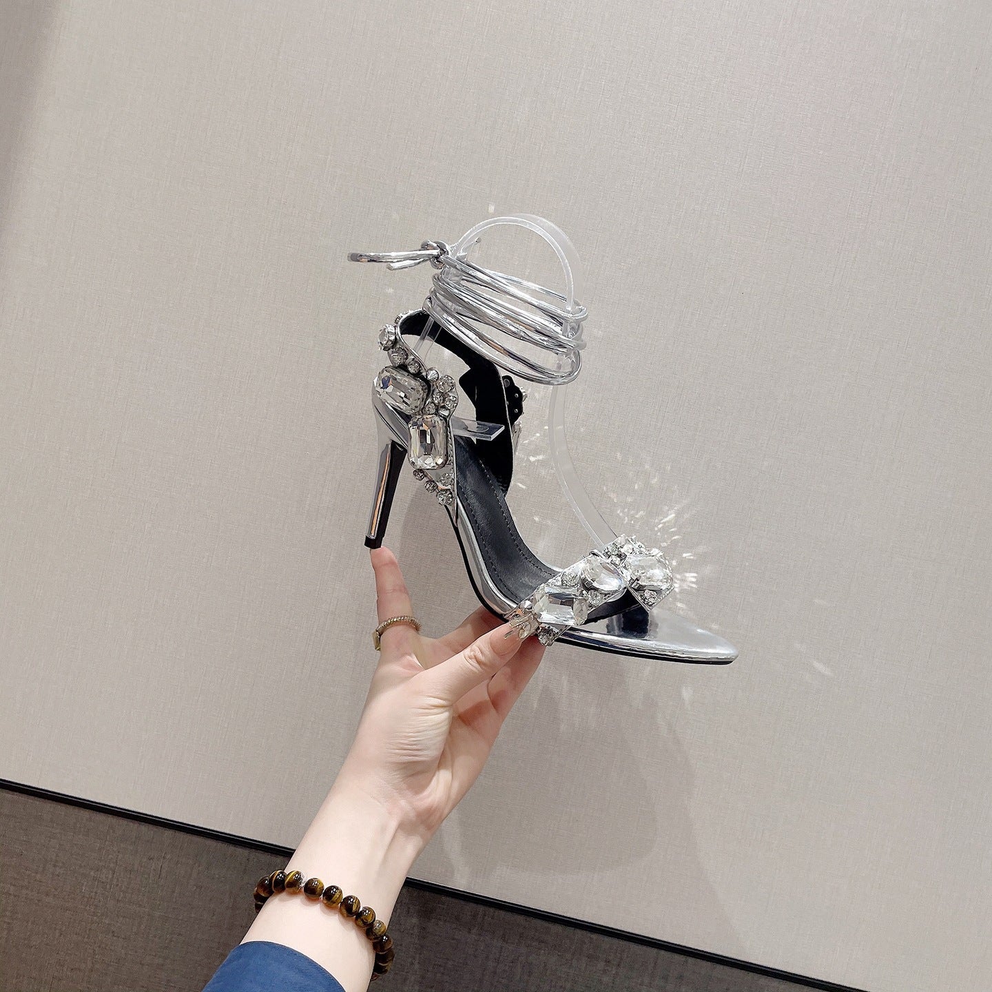 Heels 2025 New Sexy Cross-Lace With Water Toe Summer With High Heel Sandals High Quality Shoes