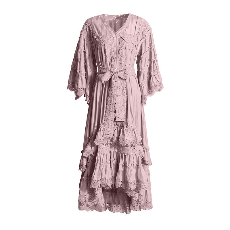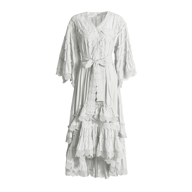 Holiday Dresses In The Wind 2025 Summer New V-Neck Embroidered Button High-Necked Dresses