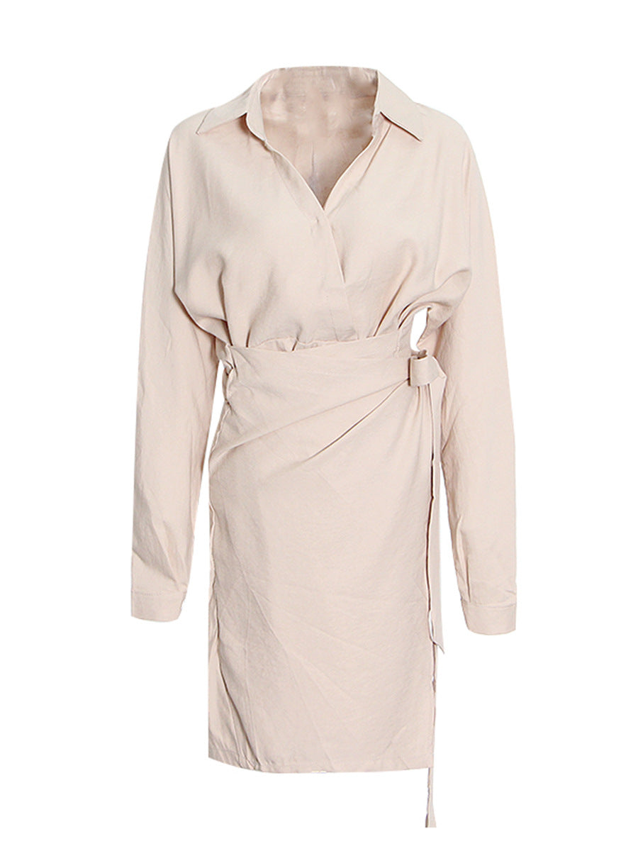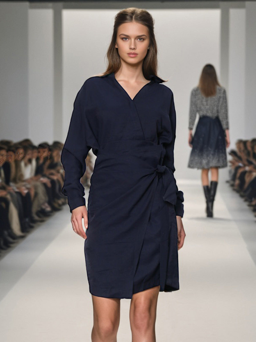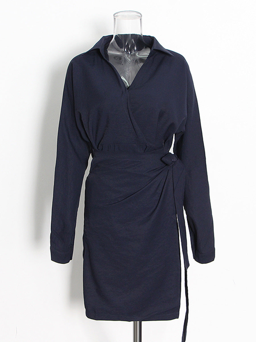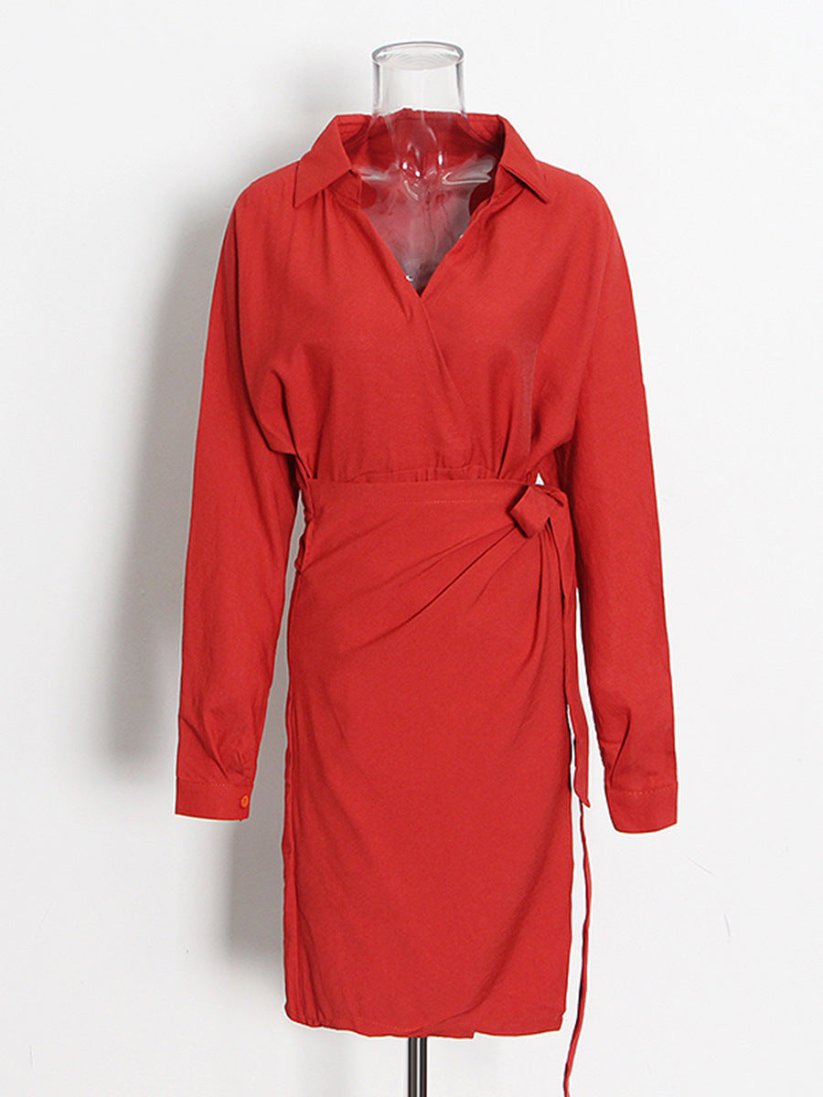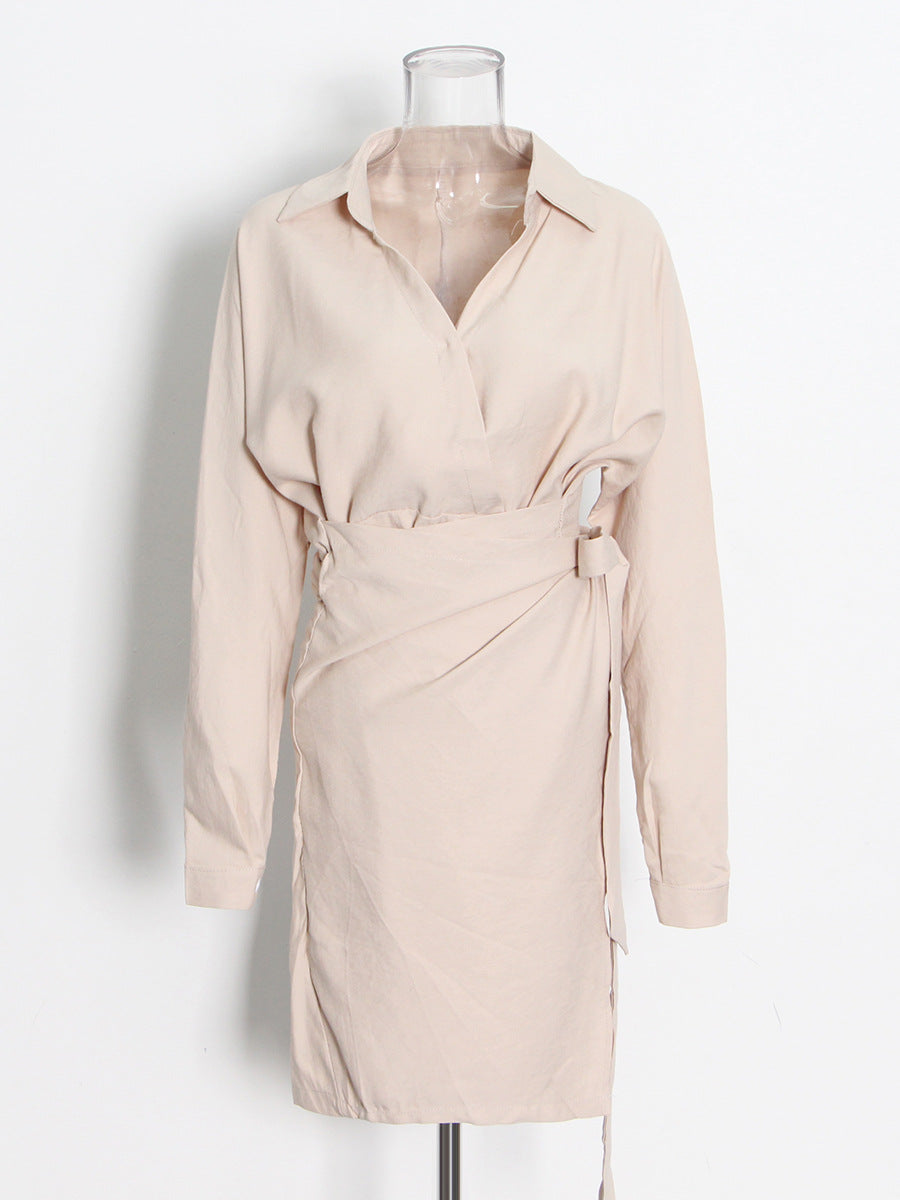 Korean Fashion Dress 2025 New V Tie Collared Waistband High-Grade Slim Long Dress Woman