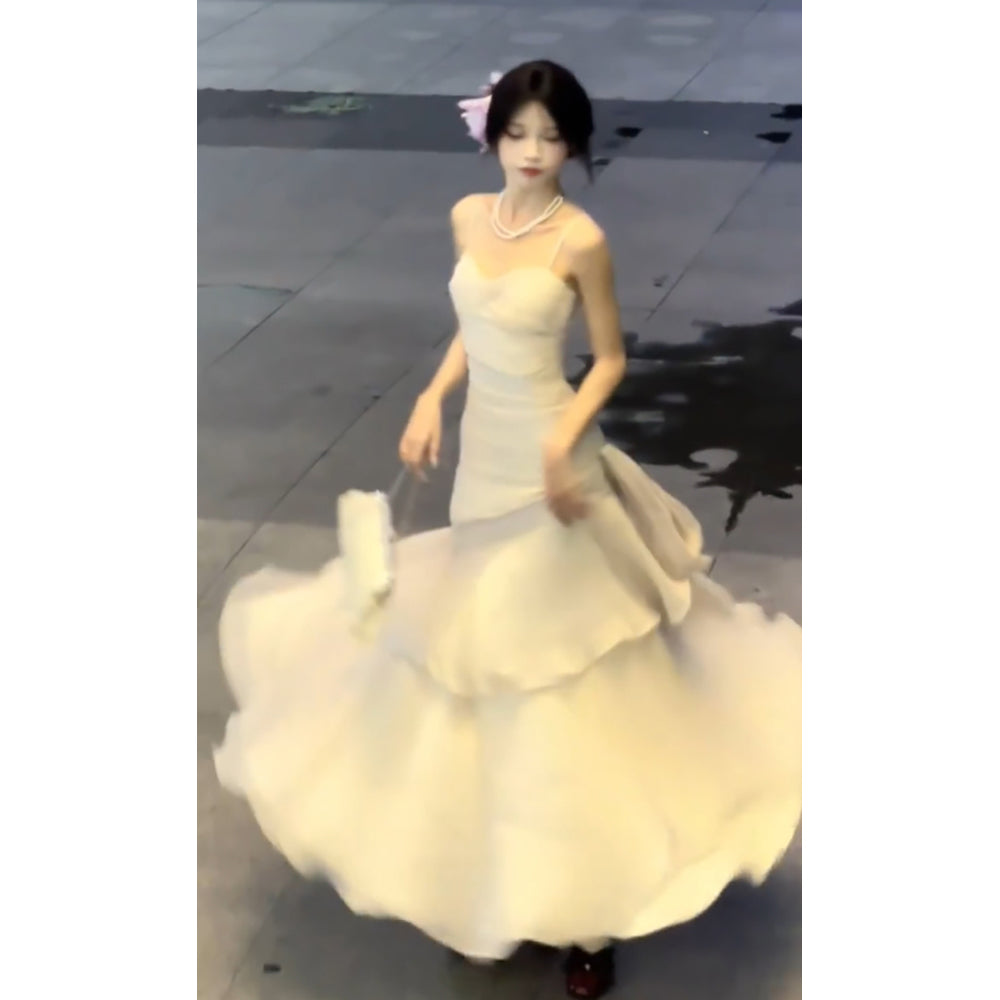 Mermaid Spaghetti Straps Ivory Long Prom Dresses Night Dress Birthday Outfits SD1174