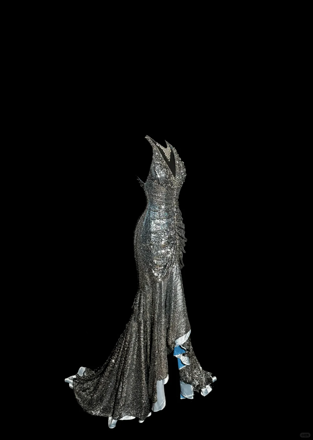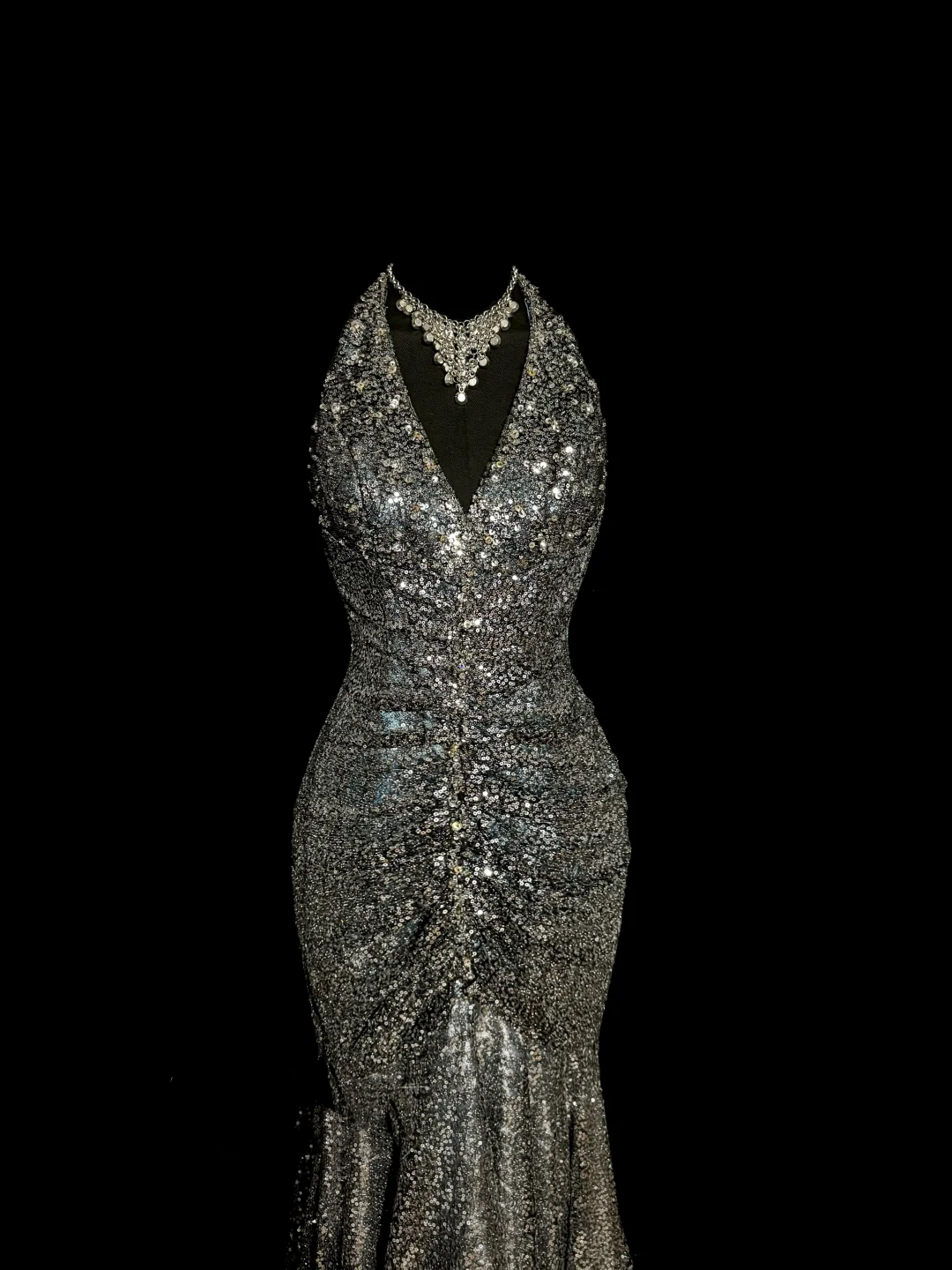 Mermaid V Neckline Gray Sequin Long Prom Gown Fairy Prom Dresses SD2958
