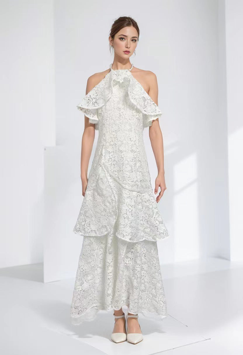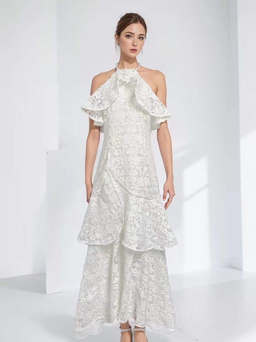 Model 2025 Summer New Sexy Tight Dress Body Body To Collect Waist Hollow Long Dress Woman