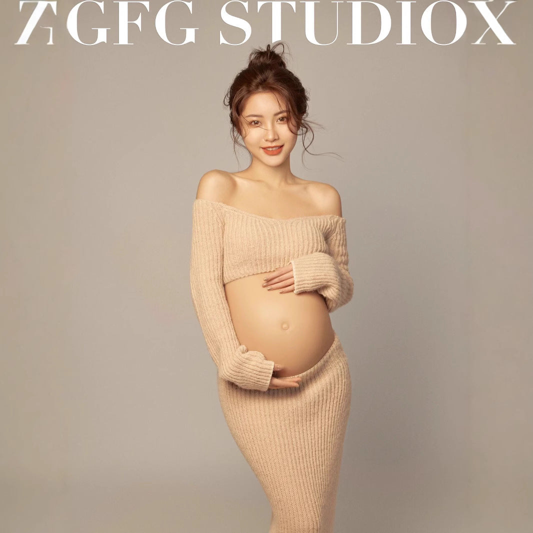 New Film Studio Pregnant Women's Clothing Big Belly Knitting Set Sexy Home Style Photography Art Photos At Home Maternity