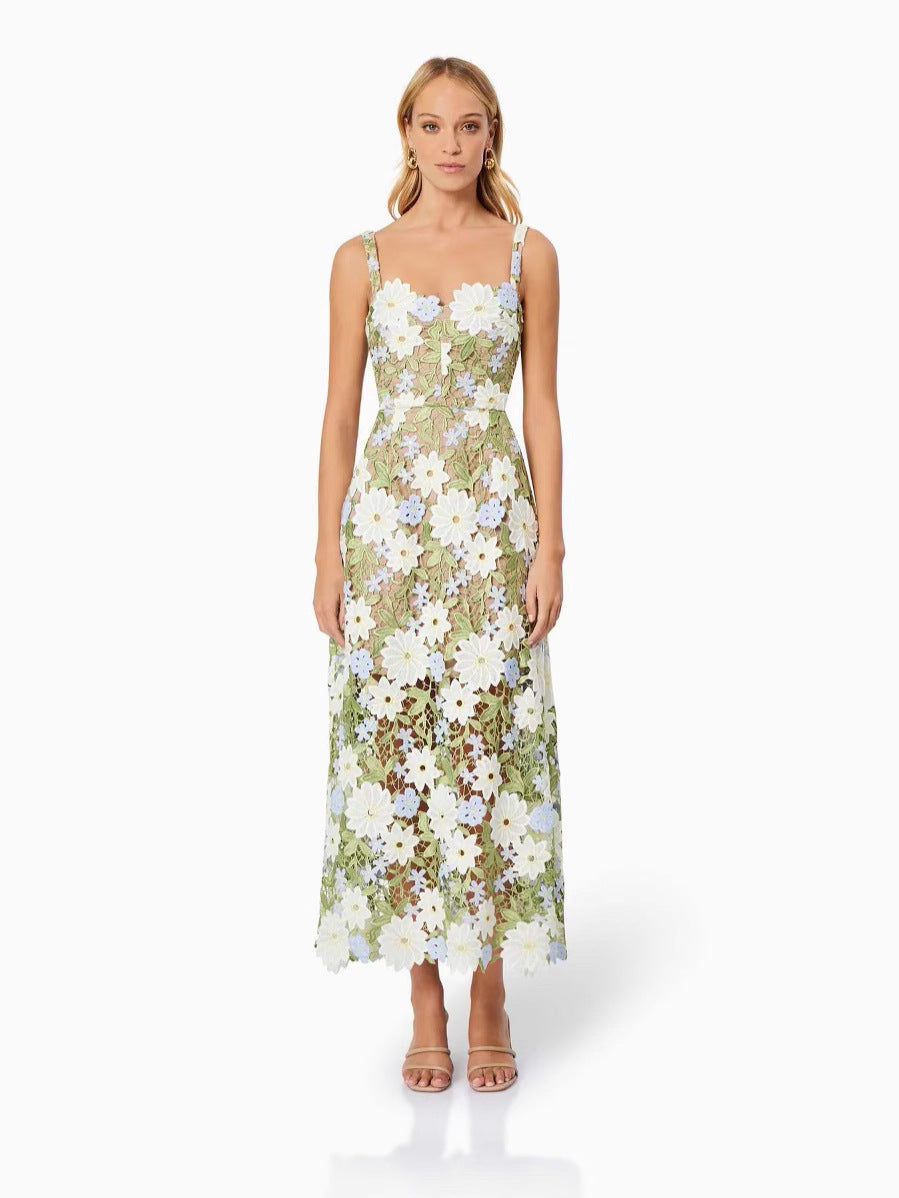 New Sling With Brated Flowers Decorated With Hollow Long Dress Women