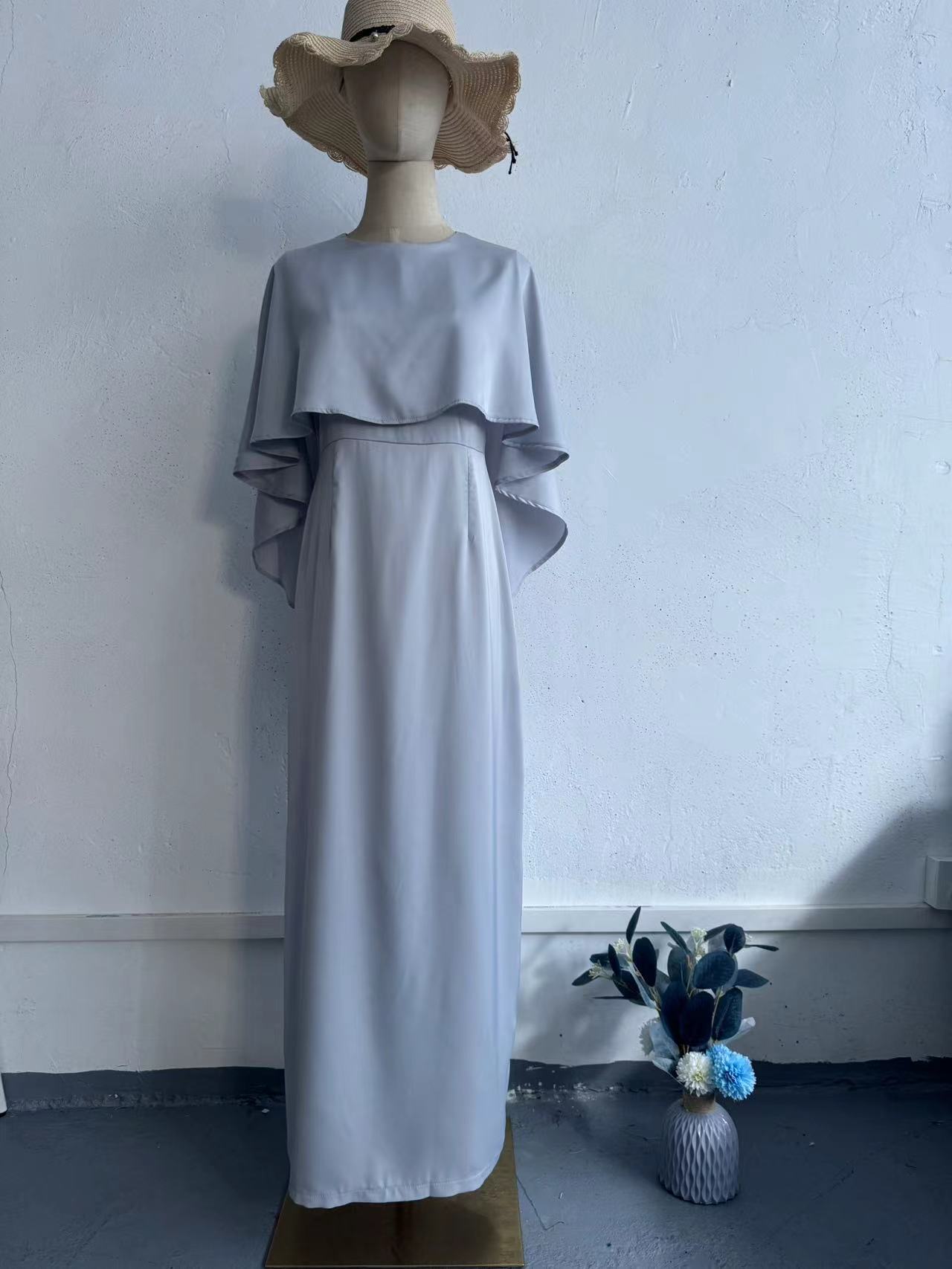 New Solid-Colored Set Of Fassing Bat Shawl Temperament Waist Long-Sleeved Dress