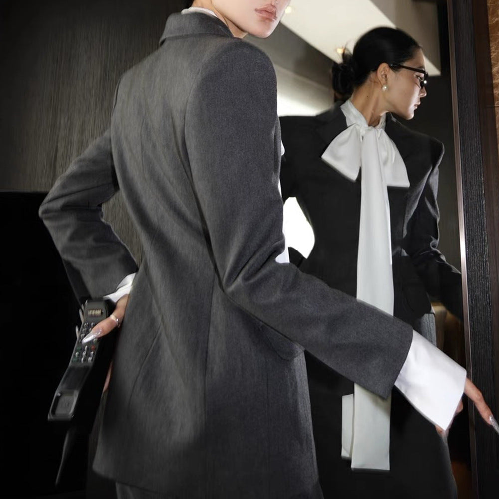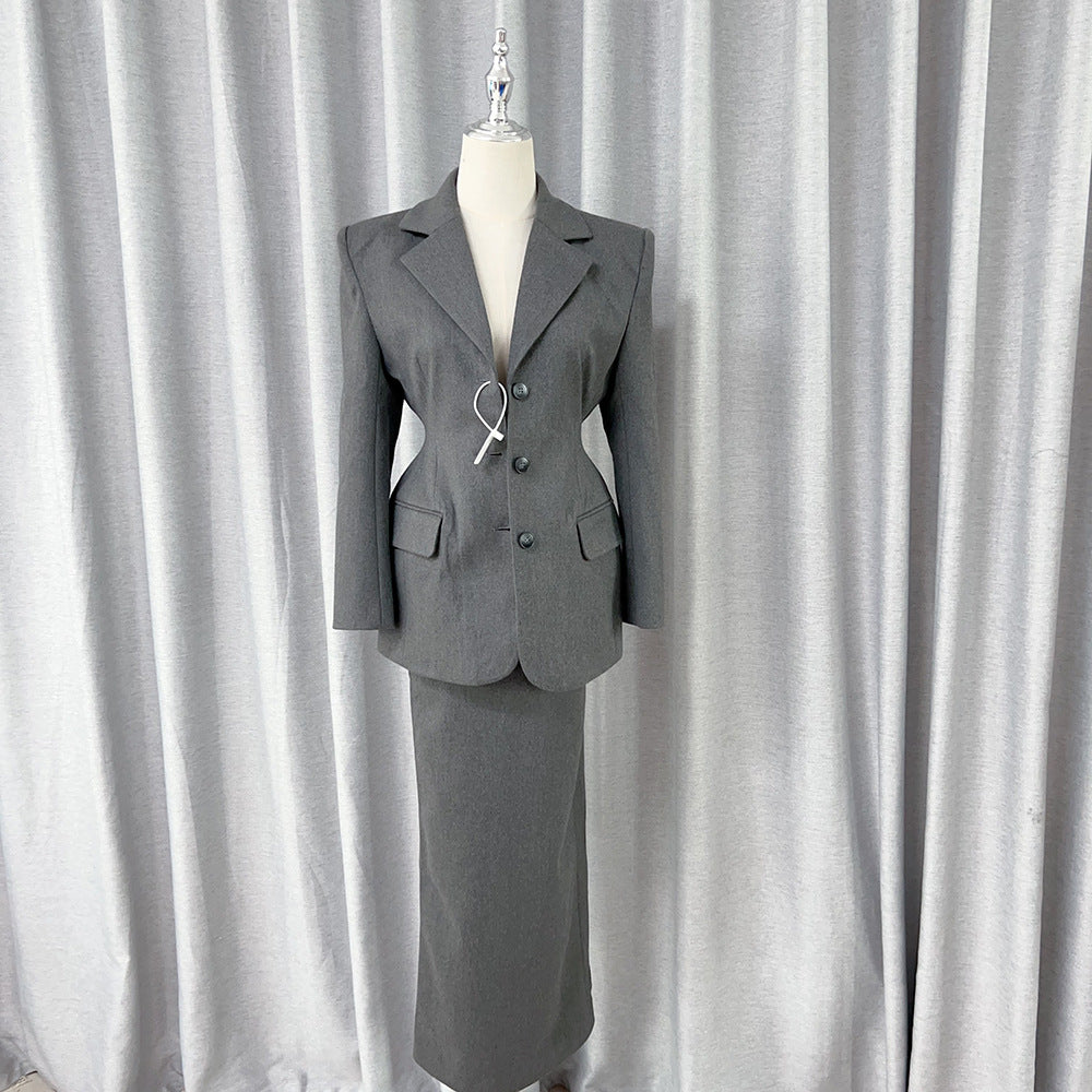 Sanguan Temperament Fashionable Gray Blazer Half-Dress Three-Piece Set 2024 New