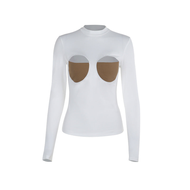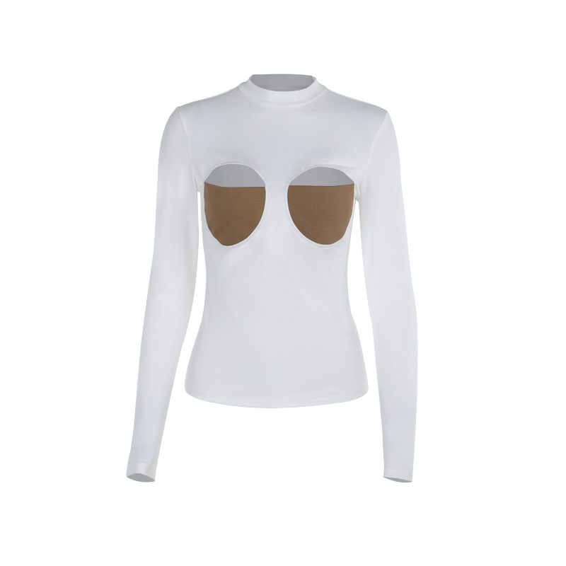 Stitched Hollow Breast Cup Long-Sleeved Top Woman Autumn 2025 New Simple Style Casual Body Repair T-Shirt DJPT