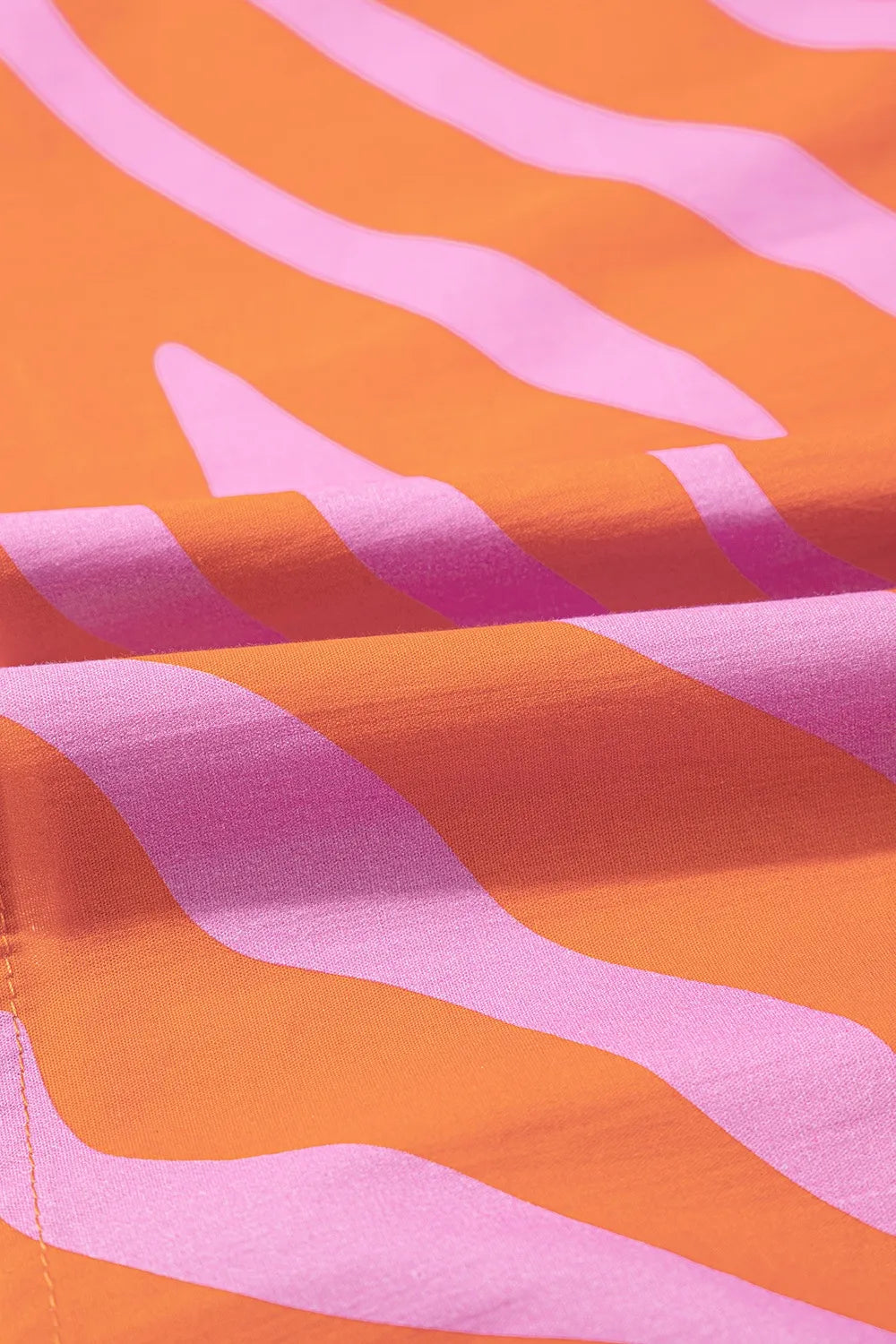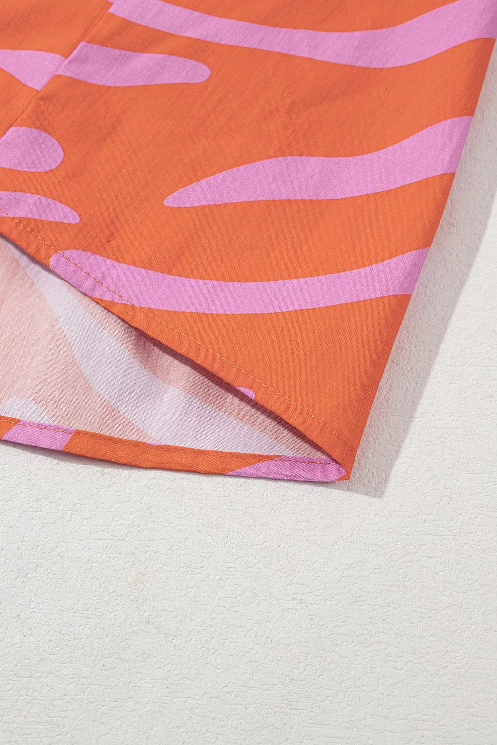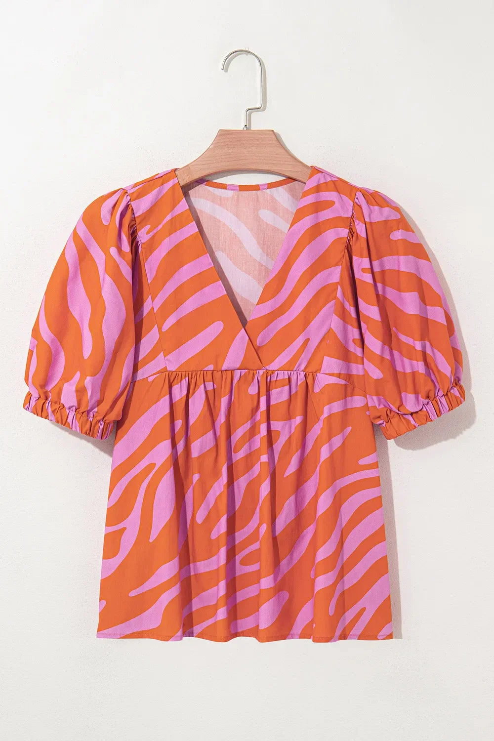 Stripe Print Ruched Cuff Half Sleeve V Neck Blouse DJPT