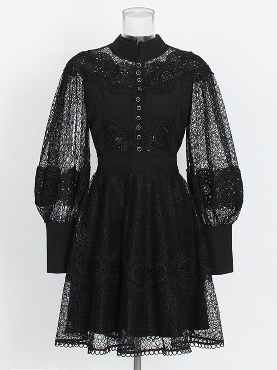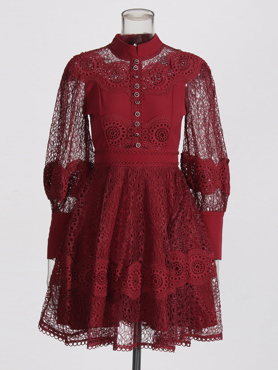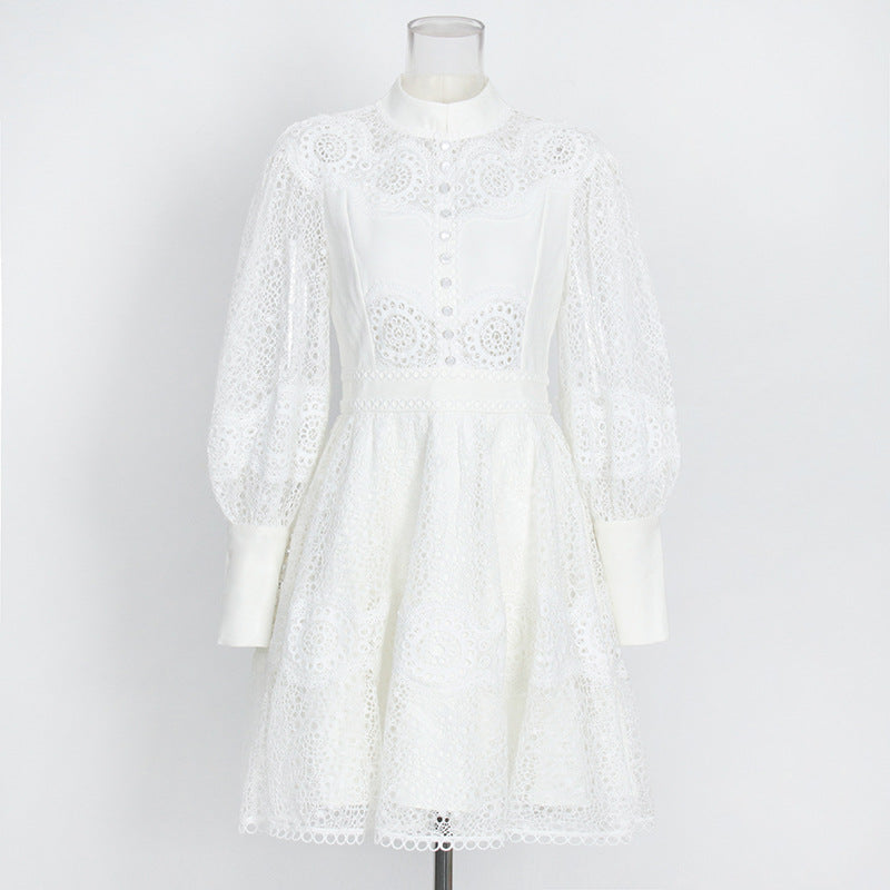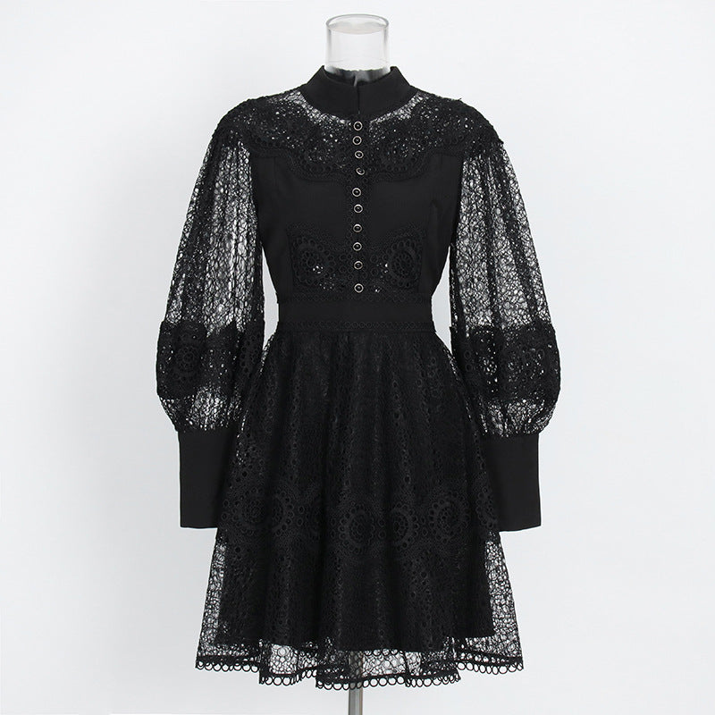 Style Lace Retro Style Heavy Industry Dress 2025 Spring New Collar Lantern Sleeves Waist Lotus Leaf Dress