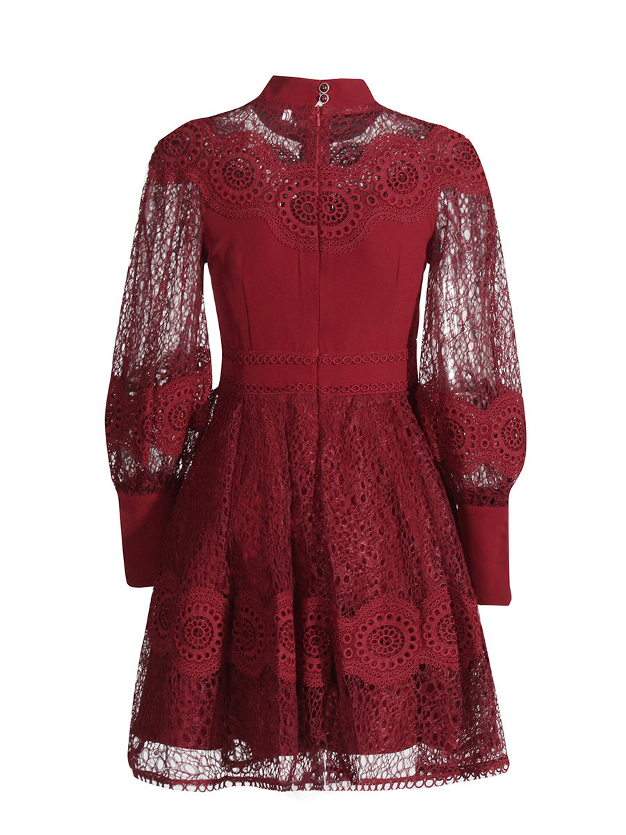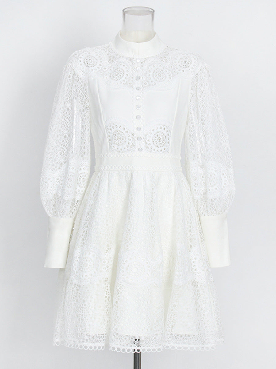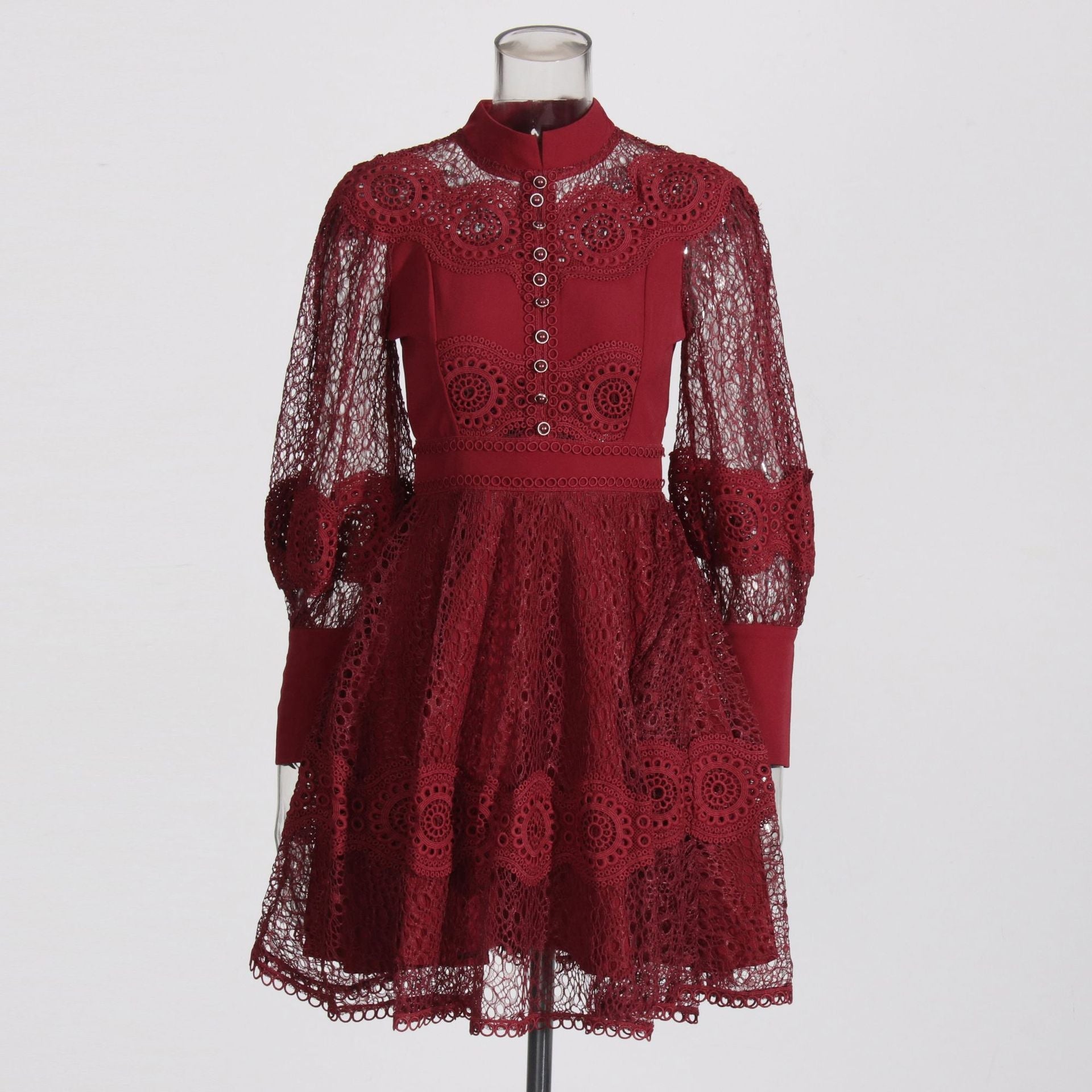 Style Lace Retro Style Heavy Industry Dress 2025 Spring New Collar Lantern Sleeves Waist Lotus Leaf Dress