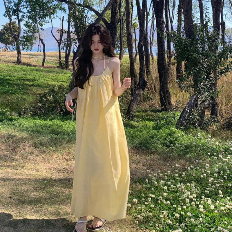 Style Yellow Sling Dress Women's Summer Seaside Wearing Skirt Loose Age Reduction A Skirt