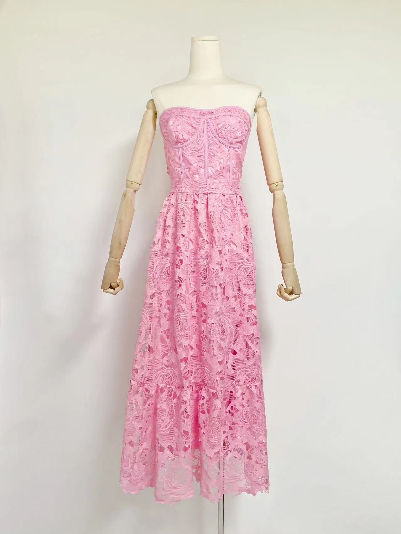 Summer New Fashion Sexy Breast-Stairs Embroidery Embroidery Hollow Dress Woman