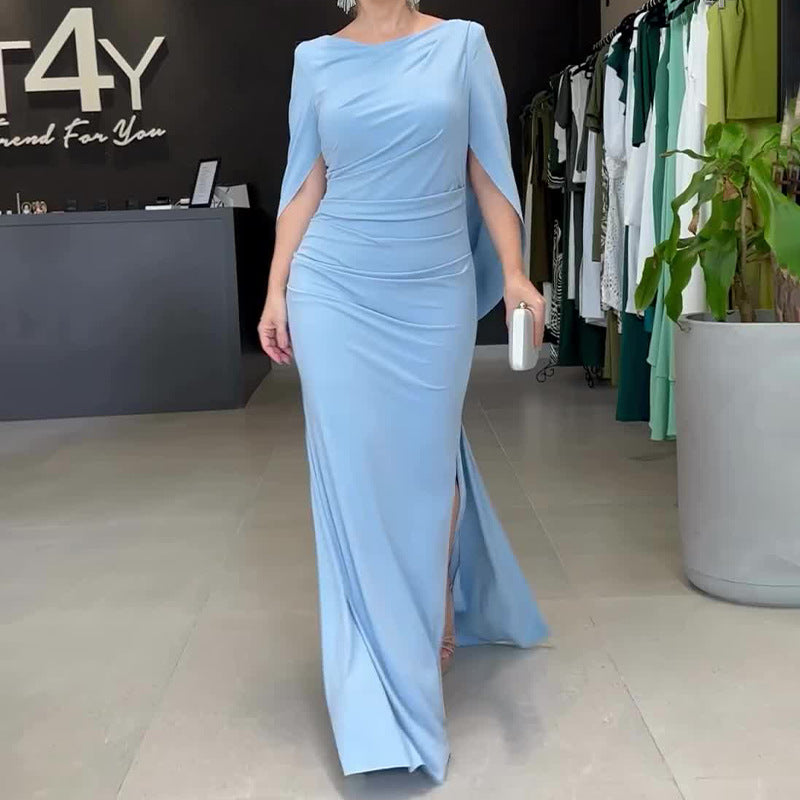 Summer Round Collar Small Shawl Design Dress Slim Height Waist Skirt
