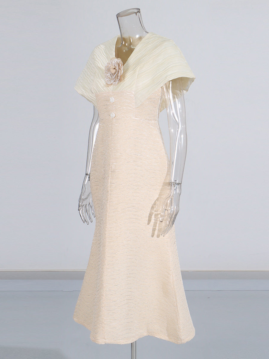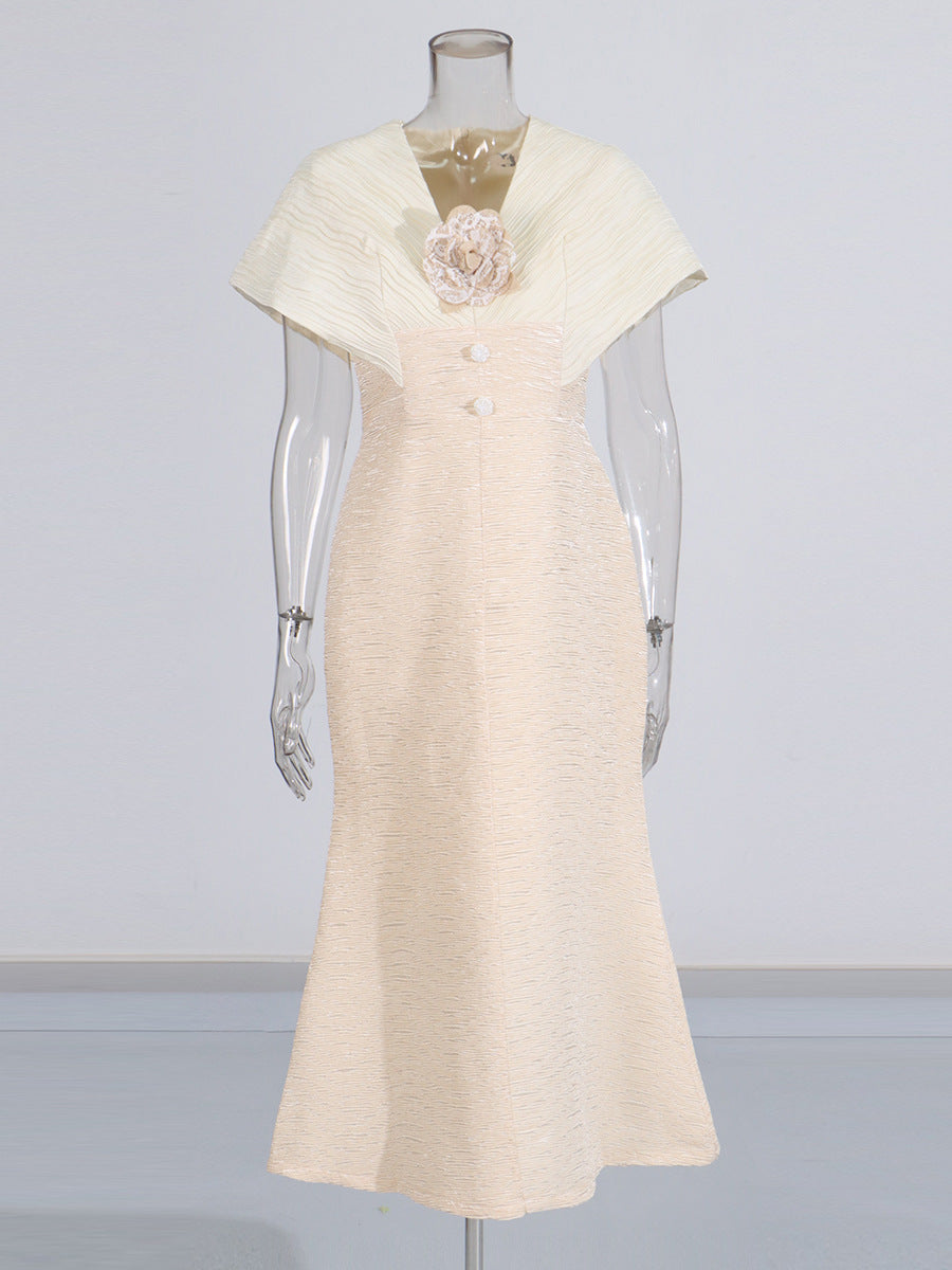 Temperament Elegant Style Dress Dress 2025 New V-Neck Three-Dimensional Flower Dress Women's Summer High Sense