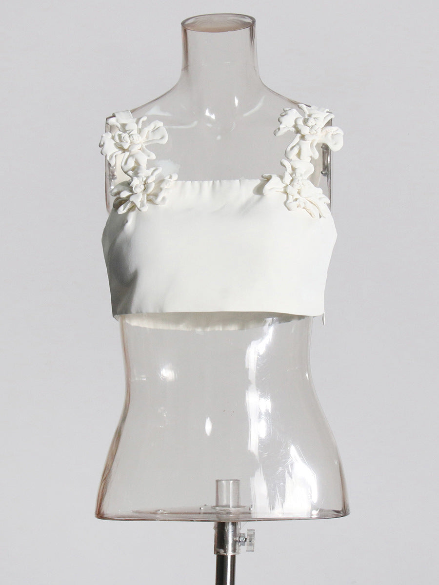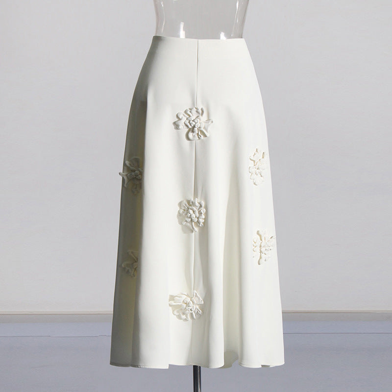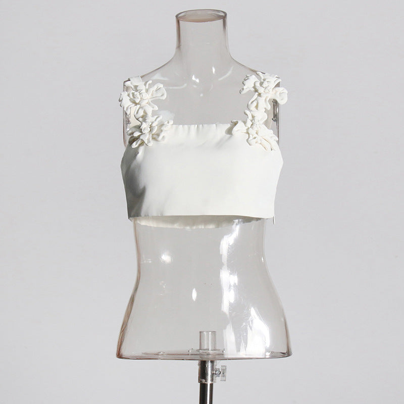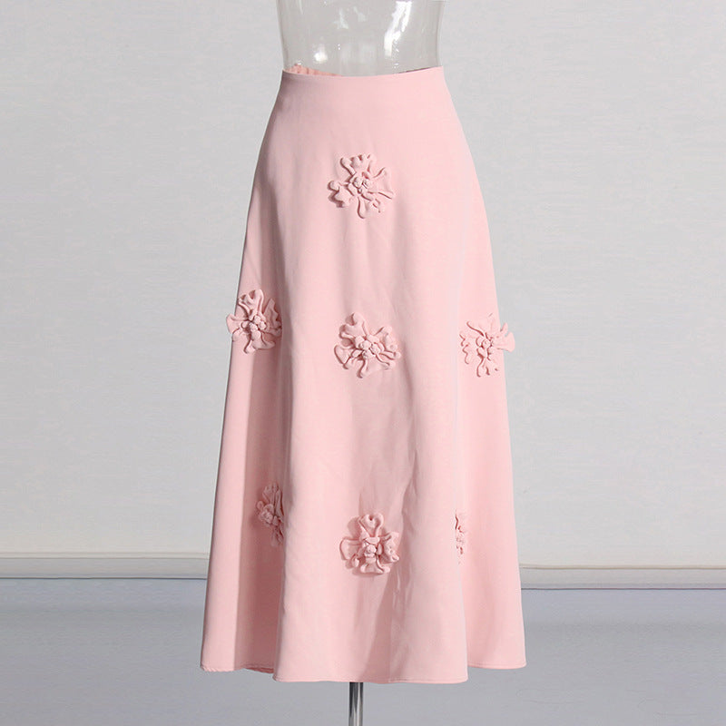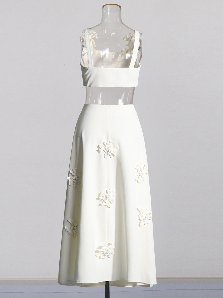 Temperament Elegant Wind 2025 Spring New Three-Dimensional Flower Sling Sling Belt High Waist Mid-Long Skirt Suit Woman