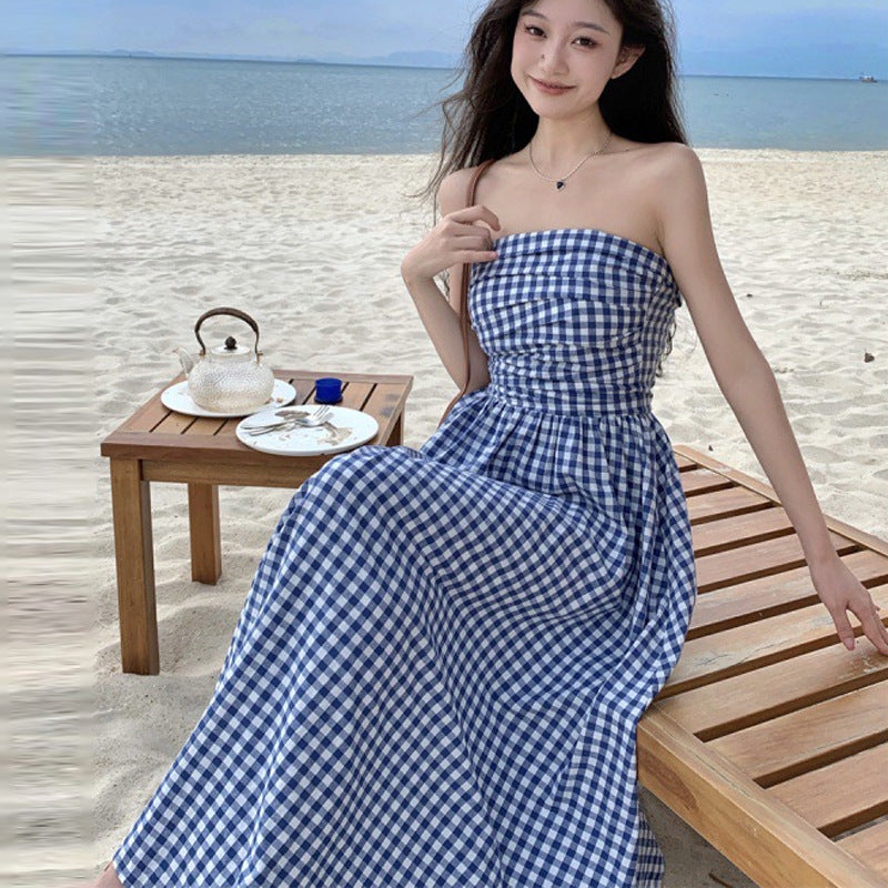 Tset Dress Women's Summer 2024 New Temperament A Word Waistless Sleeveless Dress