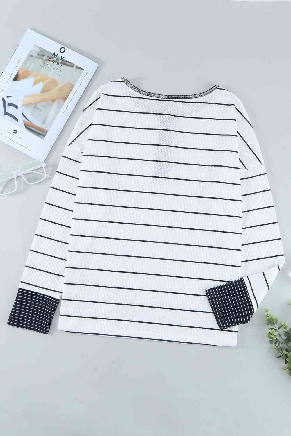 Waffle Knit Henley Long Sleeve Top DJPT