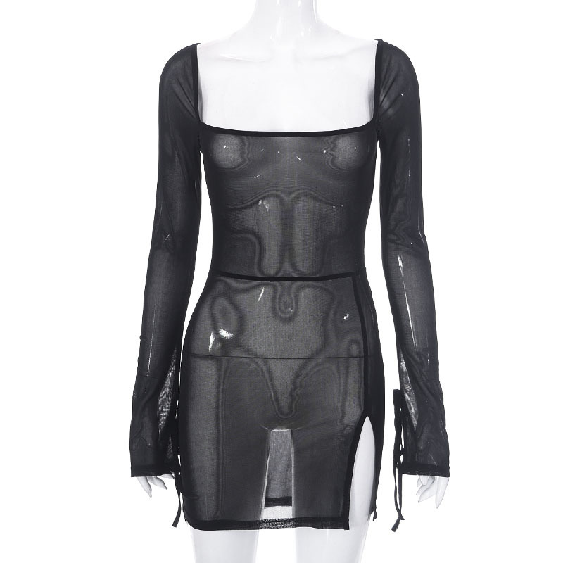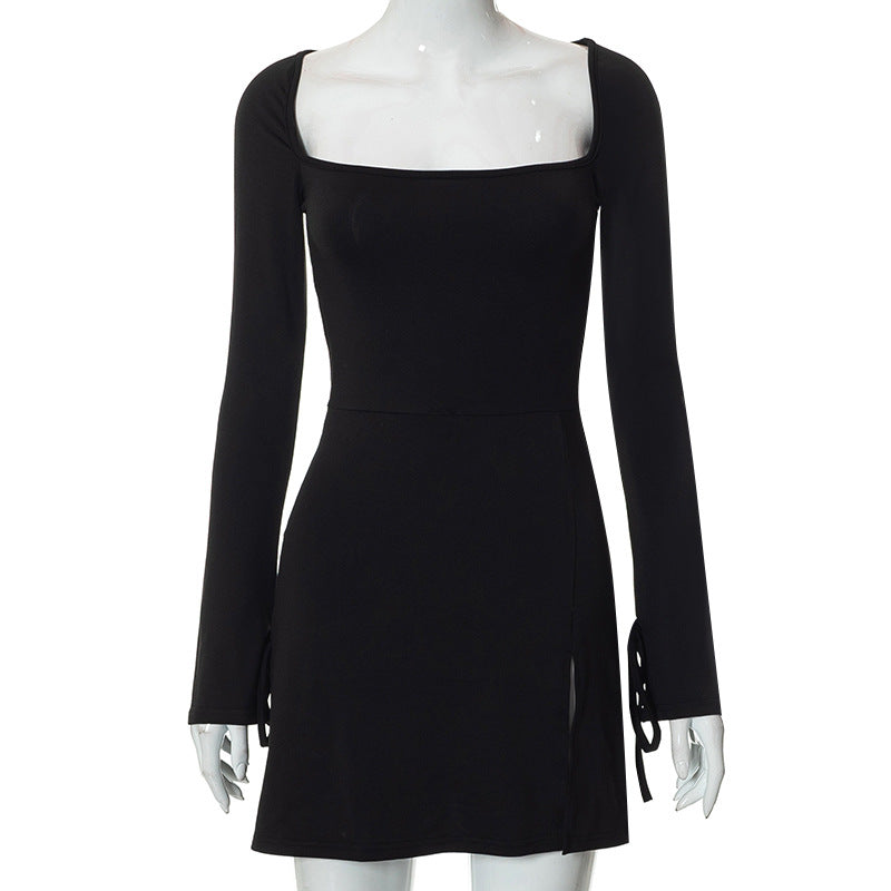 Women's Autumn New Square Sleeves Cuffed With Open-Prong French Dress DJPT